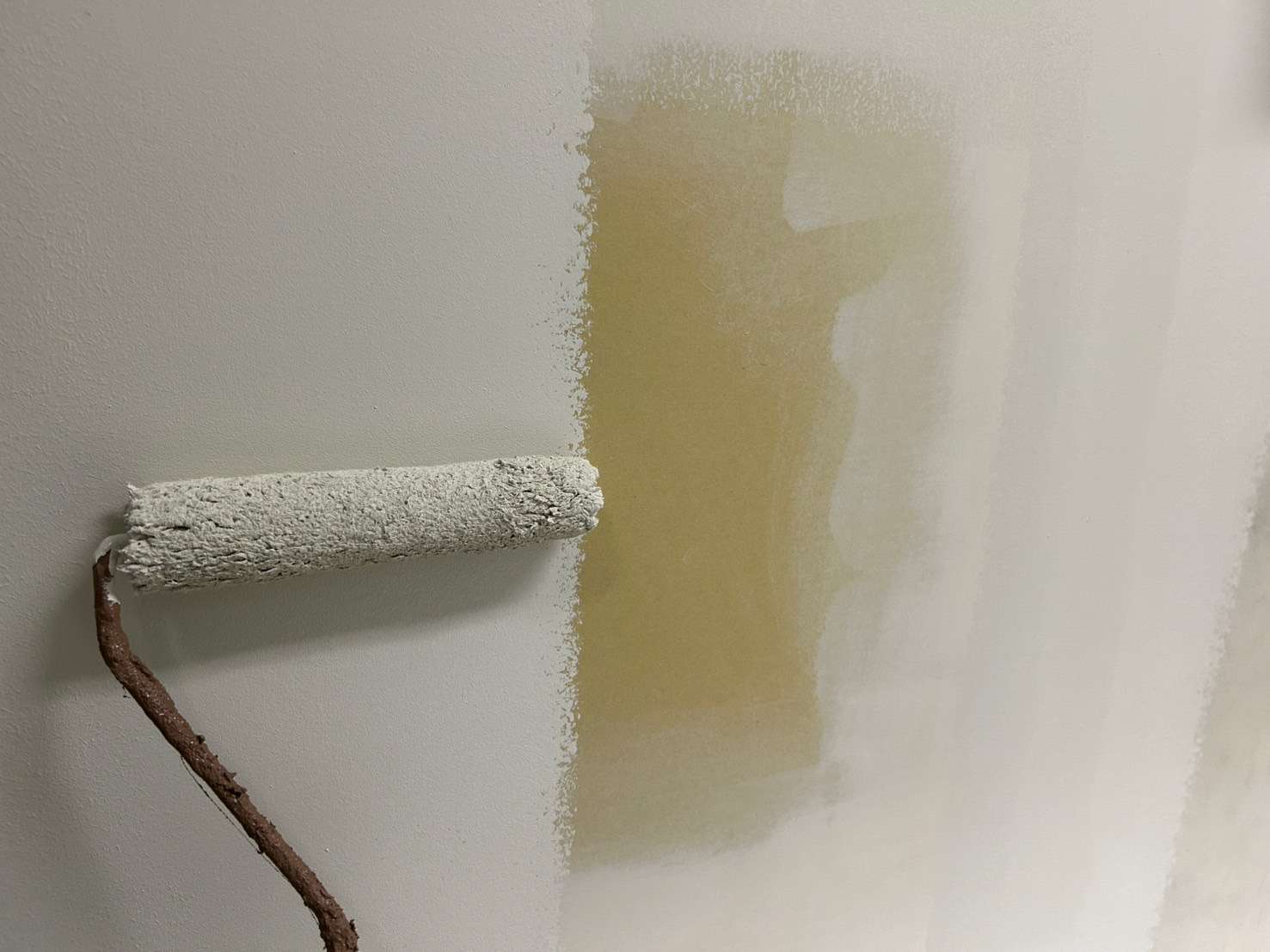 最終仕上げとして、さらに広範囲に薄くパテを塗布し、目視でわかる凹凸を埋めていきます。薄塗りを意識しながら、均一に仕上げることが大切です。ここでの丁寧さが最終仕上げ(クロスや塗装)の美しさに大きく影響します。