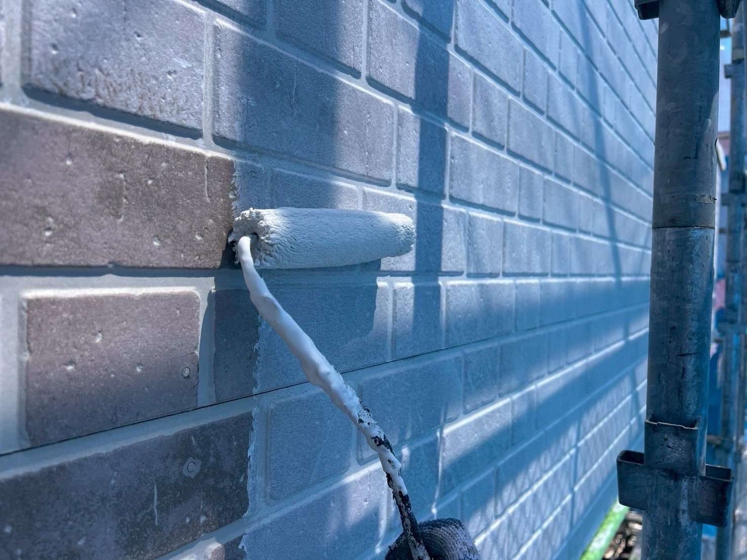 今回は、タイル柄のサイディング塗装風景になります。