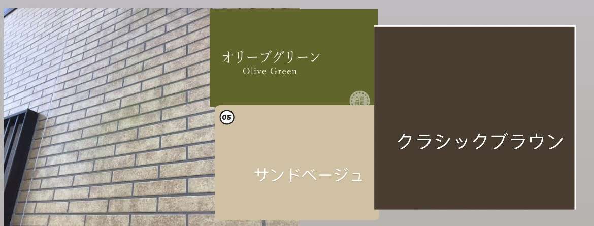 グレージュ、オリーブグリーン、サンドベージュなど、自然素材や土・木をイメージさせる落ち着いた色合いが人気です。ナチュラルで温かみがあり、周囲の景観にもなじみやすいのが特徴です。