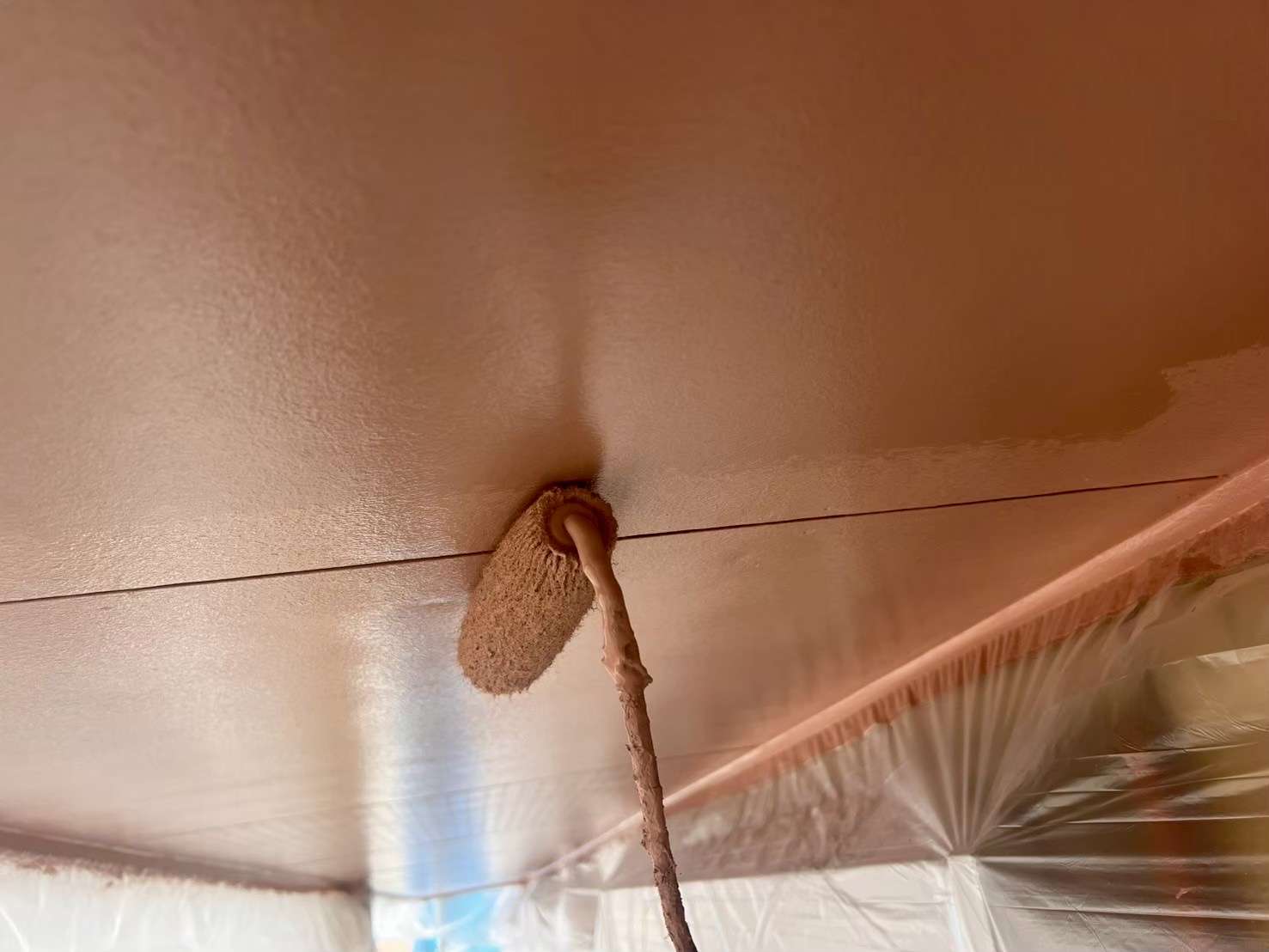 今回は、軒天井の塗装工事風景をご紹介いたします。