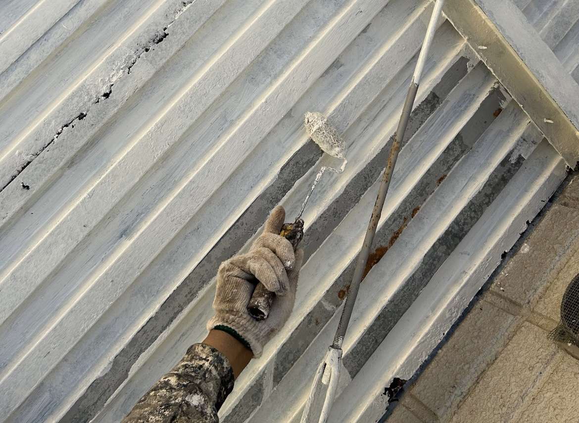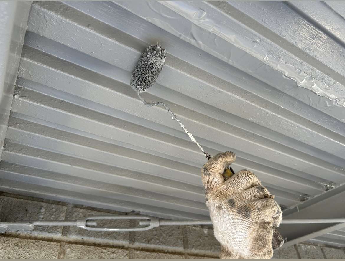 下地処理後は、サビの発生を防ぐ専用の下塗り塗料(エポキシ系など)を塗布。