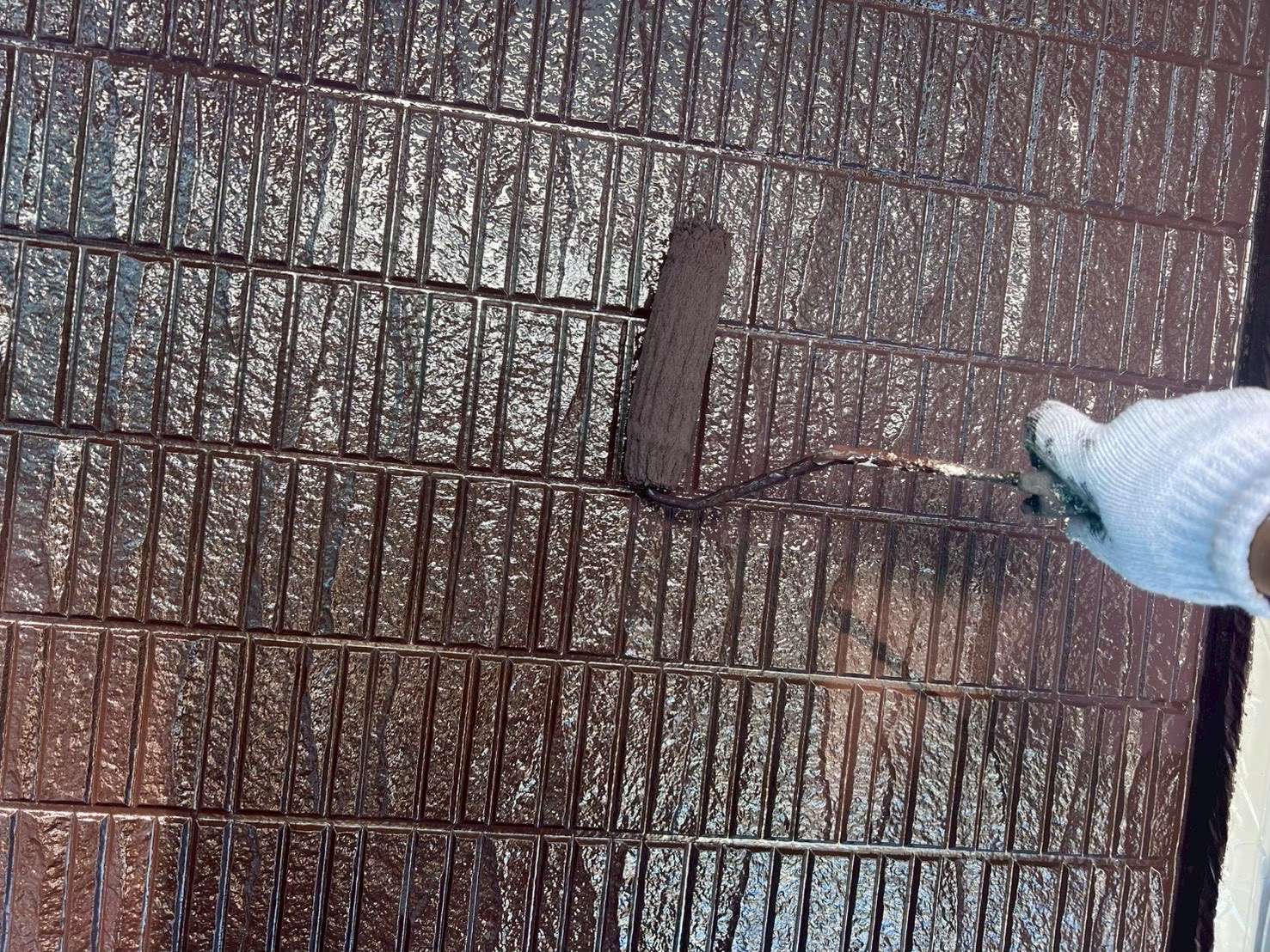 もし目地部分の塗膜が薄いままだと、数年後に色ムラが出たり、劣化が早まったりする原因になります。そのため、刷毛を使いながら、目地一つひとつに塗料を入れ込む作業が欠かせません。