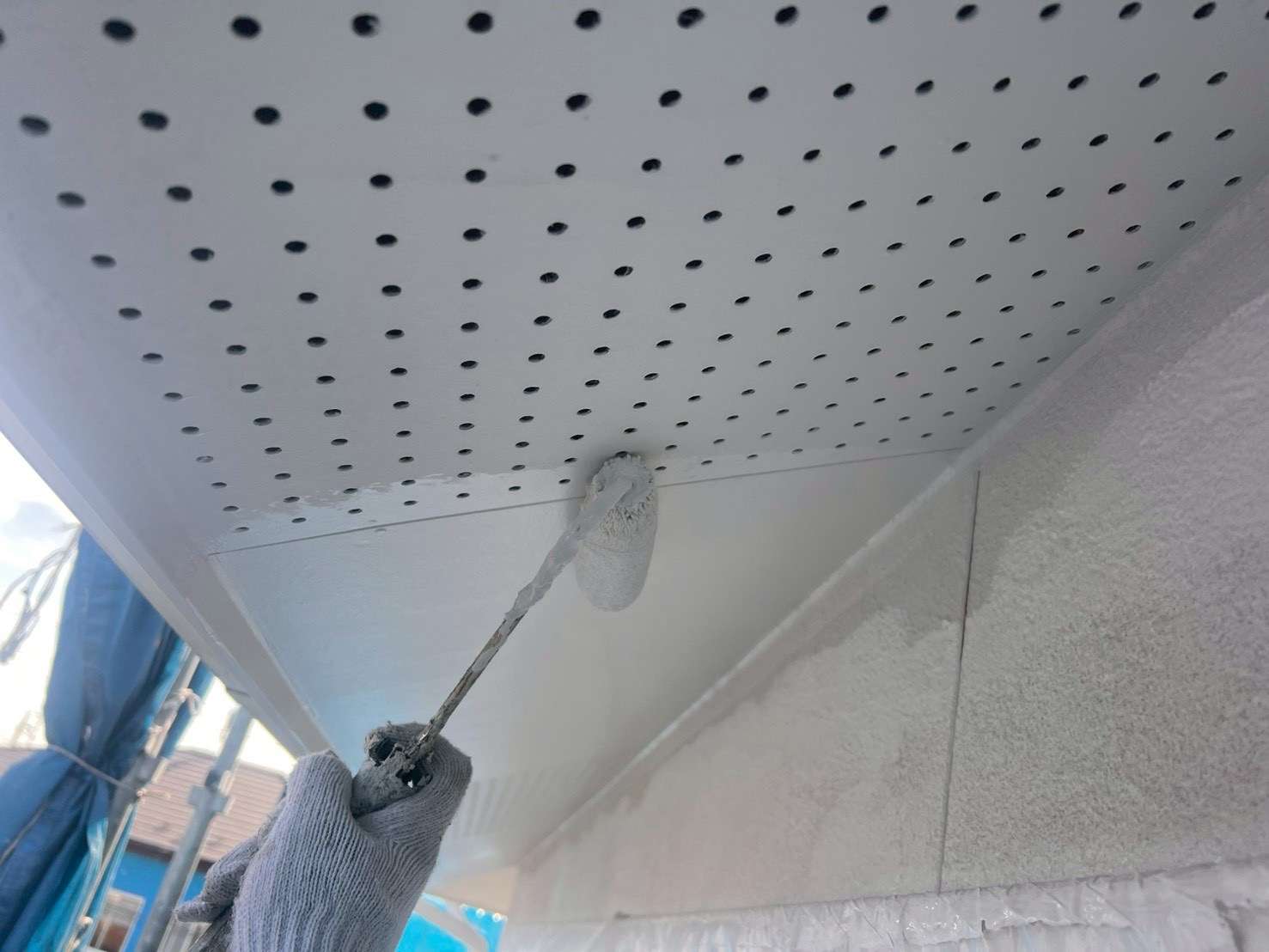今回ご紹介する作業は、軒天井の塗装になります。