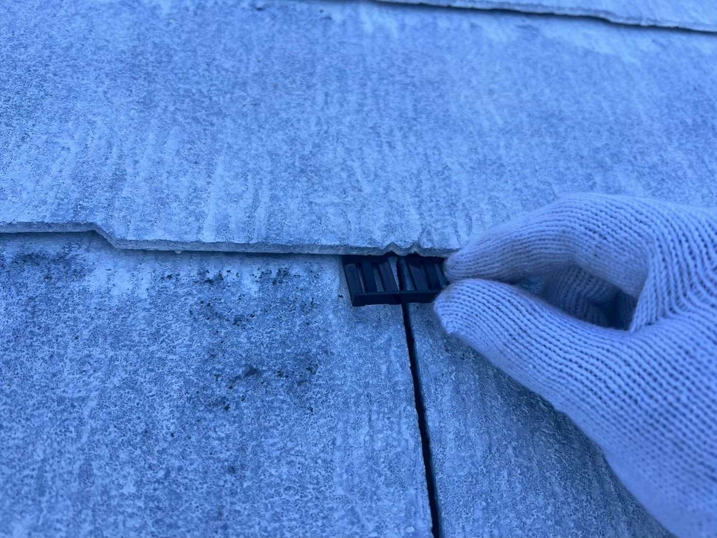 次に重要なのが「縁切り」または「タスペーサーの設置」です。これはスレート屋根において非常に重要な工程です。