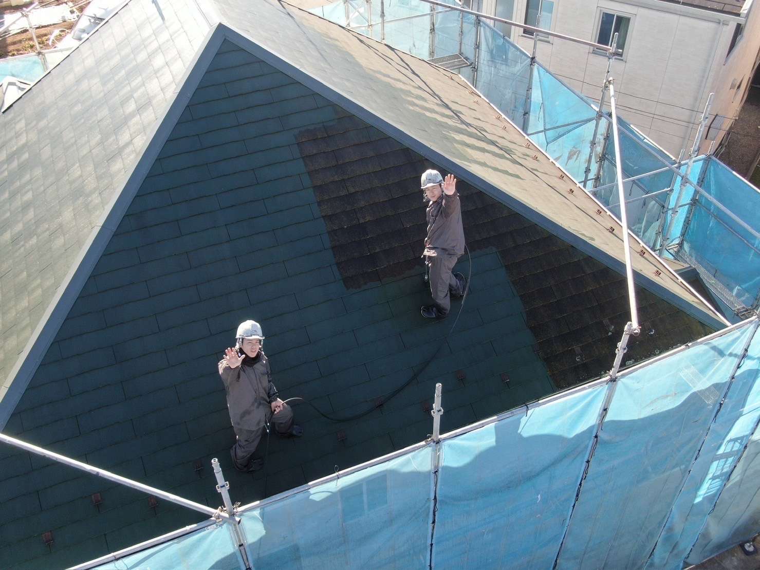完成したときも、まずお客さまに確認していただき、ご納得していただいてから足場を撤去しております。
