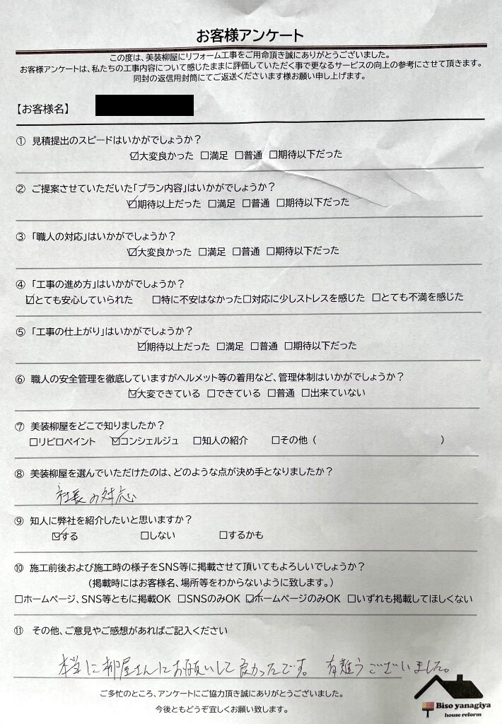 本当に柳屋さんにお願いして良かったです。有難うございました。