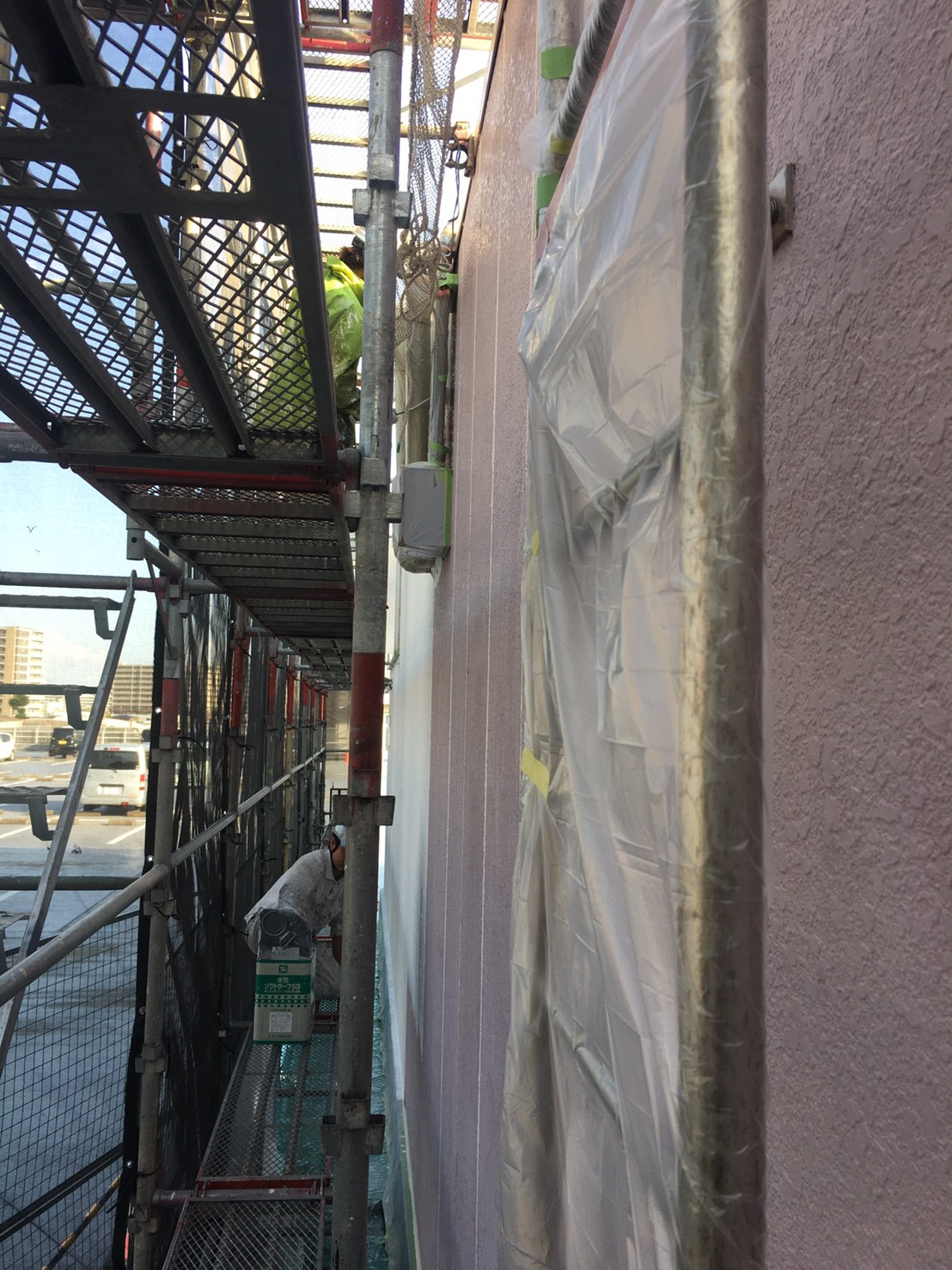 施工内容の画像が少なく作業内容をきちんとご紹介できなく残念なのですが、現在、工事に入っていて足場や飛散防止の養生でご自宅の環境が不便になってしまっているお客様の為、また次をお待ち頂いているお客様の為にも、少ない曇りや晴れの日の時間を大切に作業を進めています。