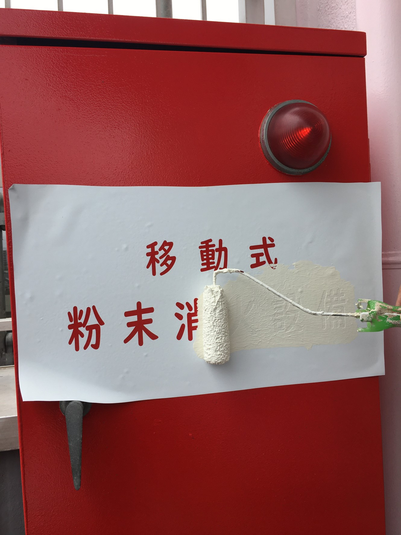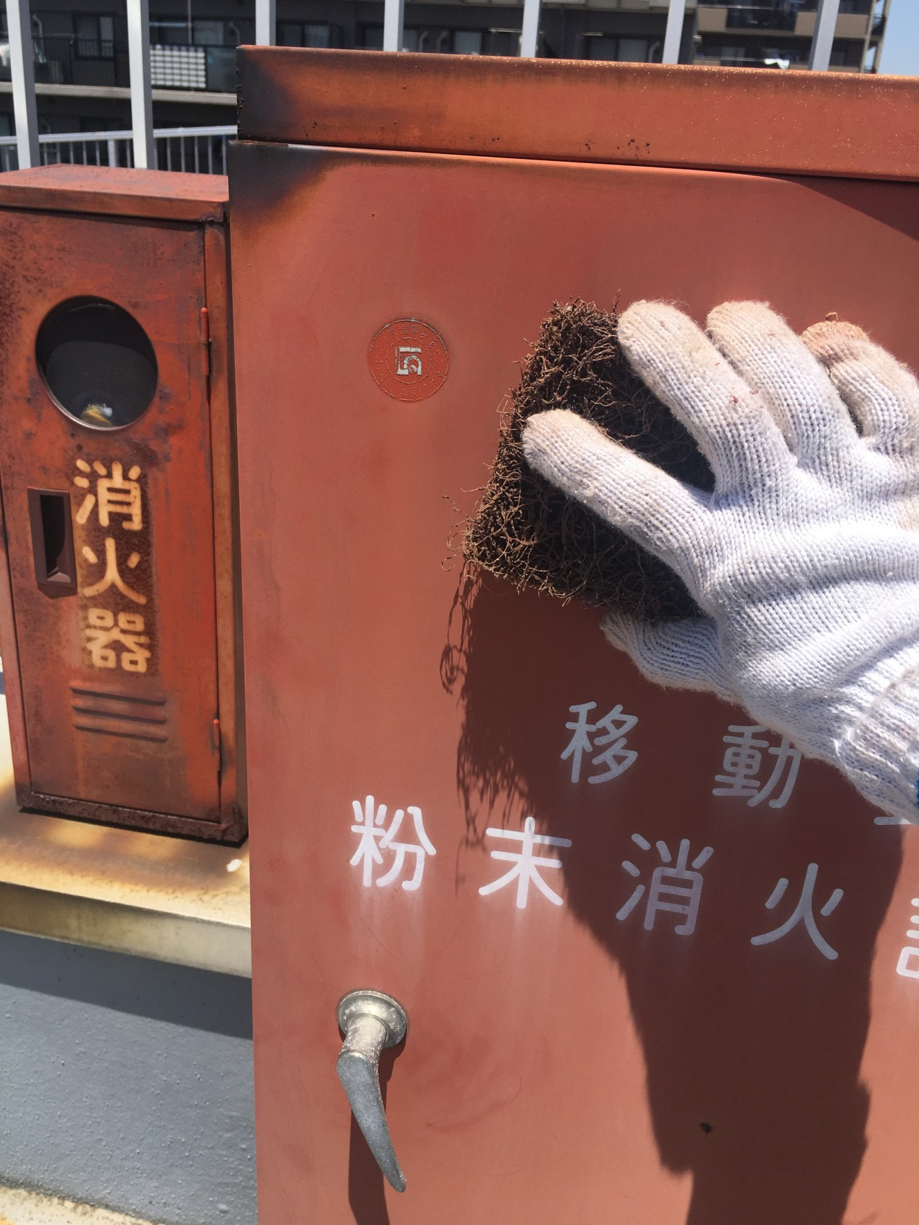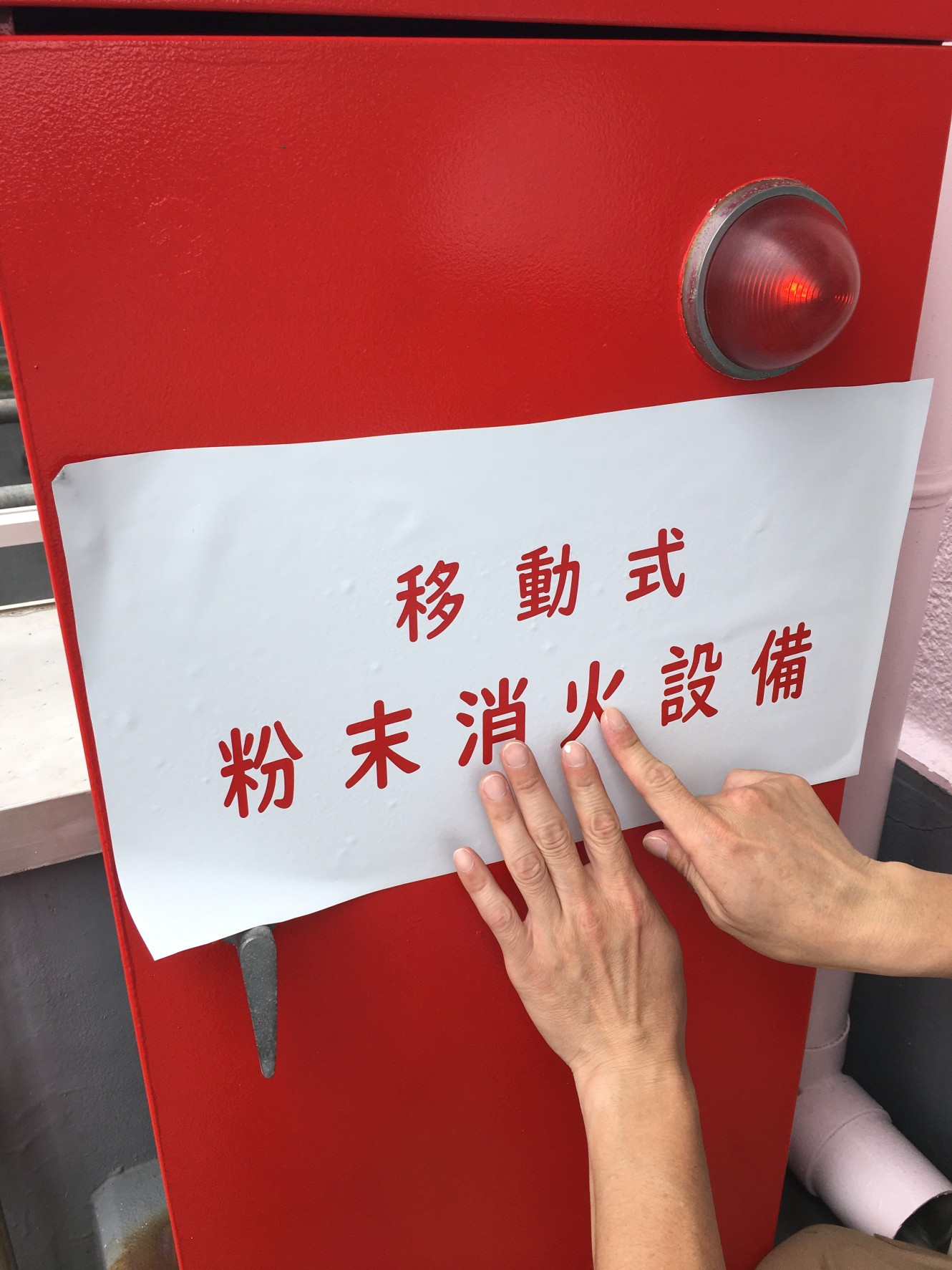 某スーパーの屋上塗装は2週間ぐらい前に完了していたのですが、急きょ追加工事で消火設備の文字入れのご依頼があり、今回全工程が完了しました(^^)