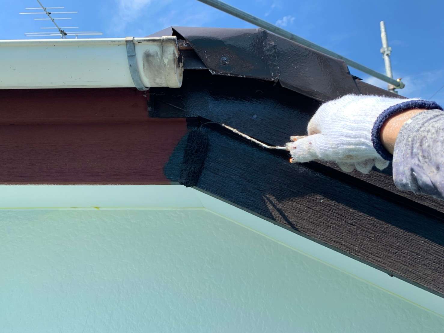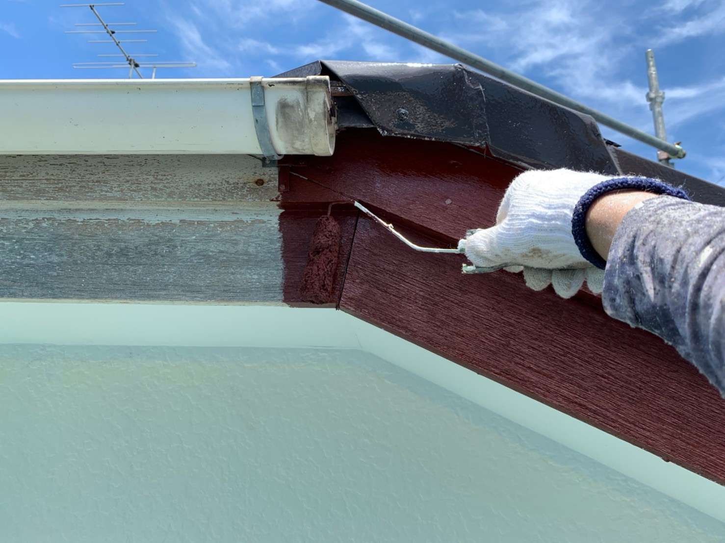 今回は軒天井の劣化が酷かったので、軒天井を張り替えてからの塗装になりました。