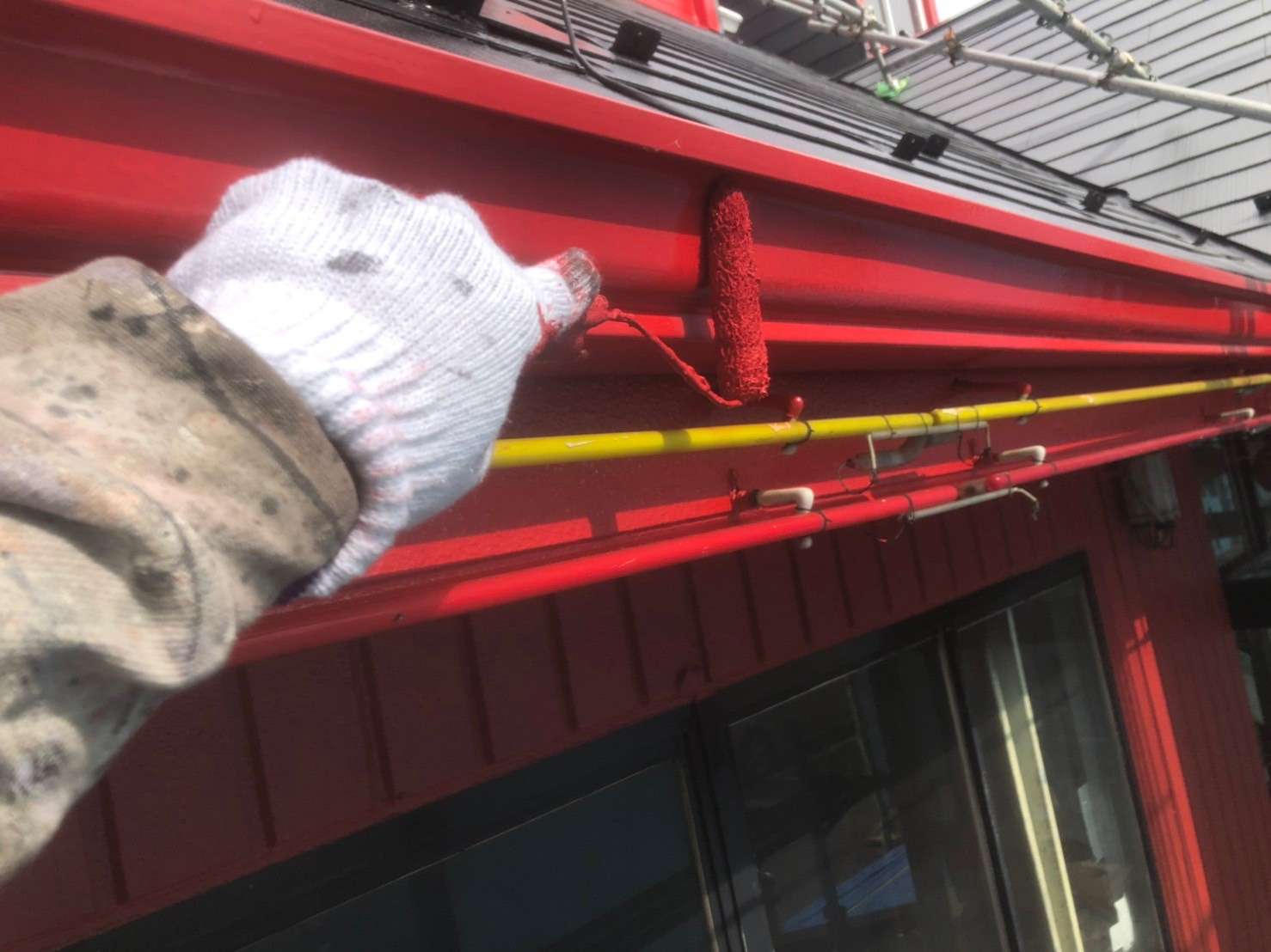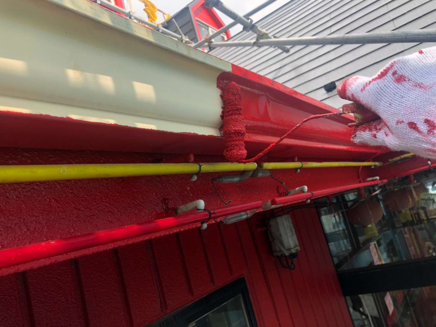 店舗下部分は器用なシャオ様店長さんが塗装されたとの事でしたので、外壁上部分のみ下部分のお色味と合わせて施工させていただきました(^^)