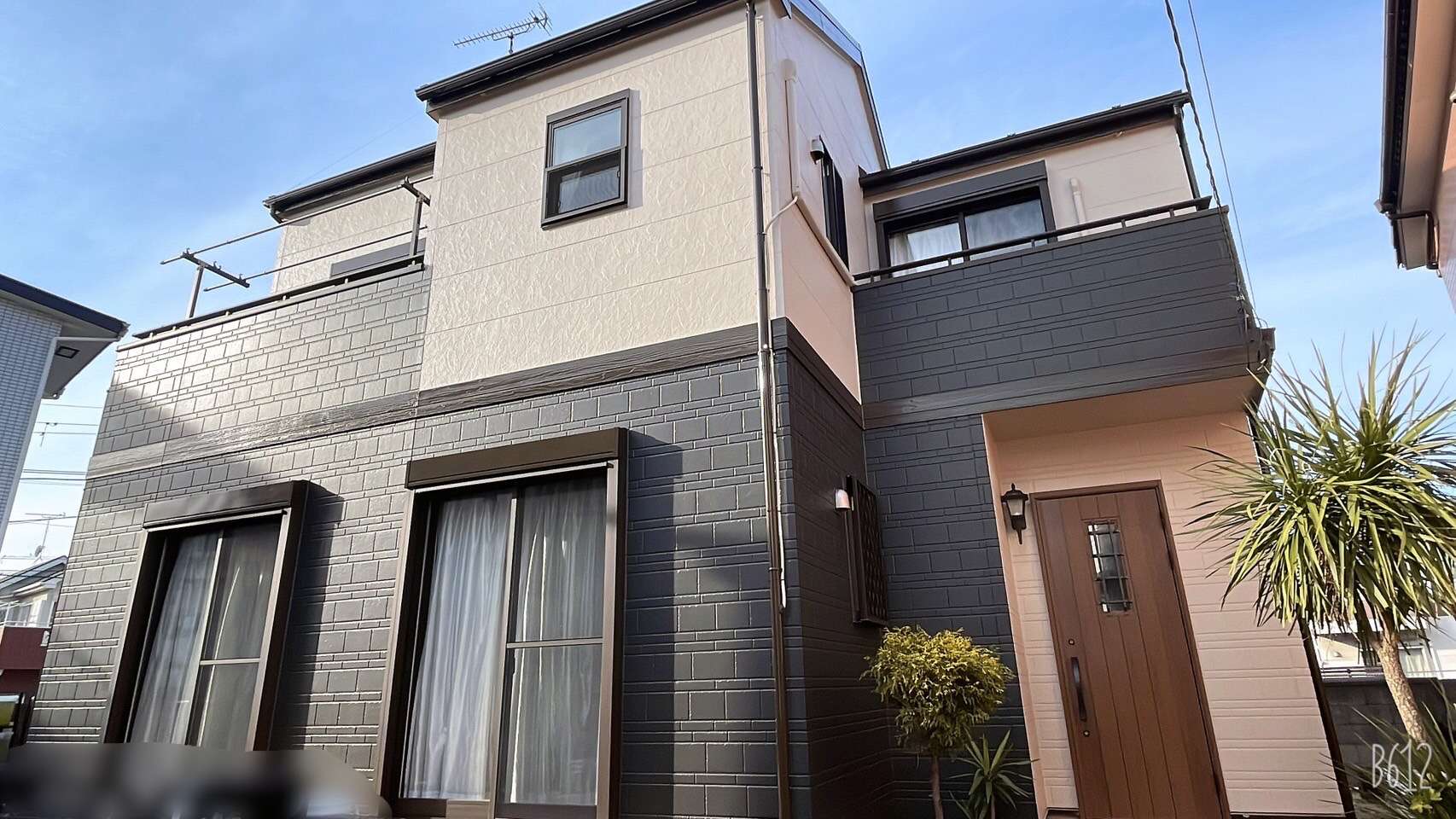 今回、施工させていただきました、船橋市にお住いのW様邸ではベージュ系と黒系のツートンカラーで塗装させていただきました。