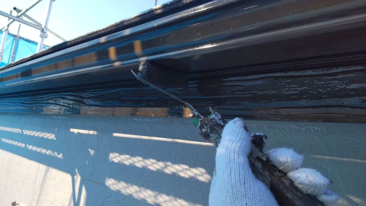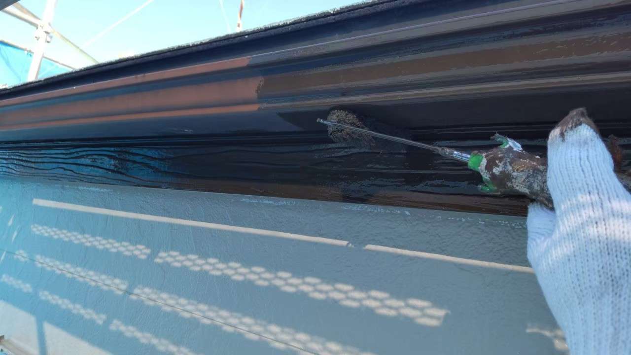 2階の配管カバーを外壁色と同じお色味にし、シャッターBOXや破風板をサッシに合わせたお色を入れたことで、まとまりのある仕上がりです。