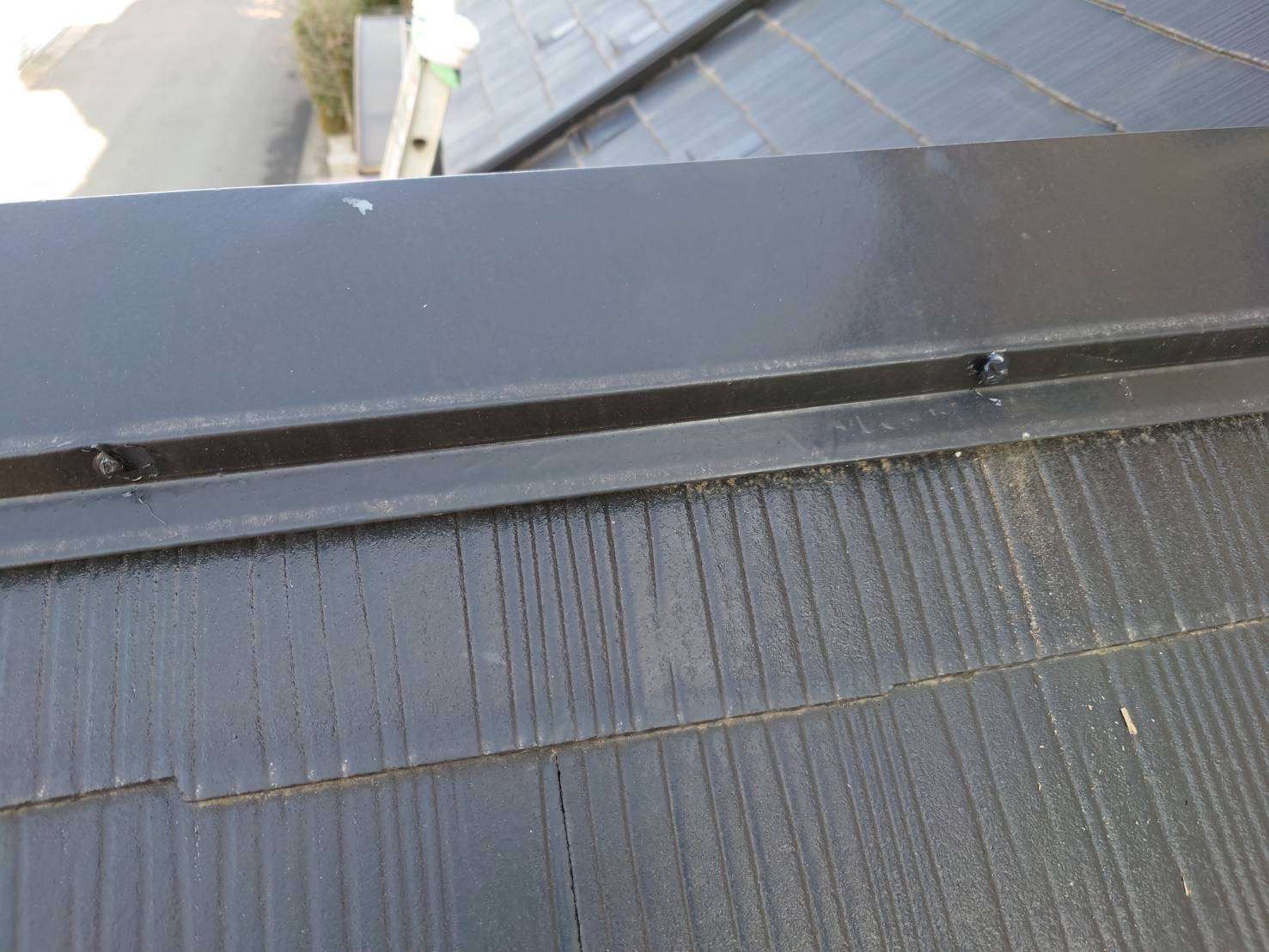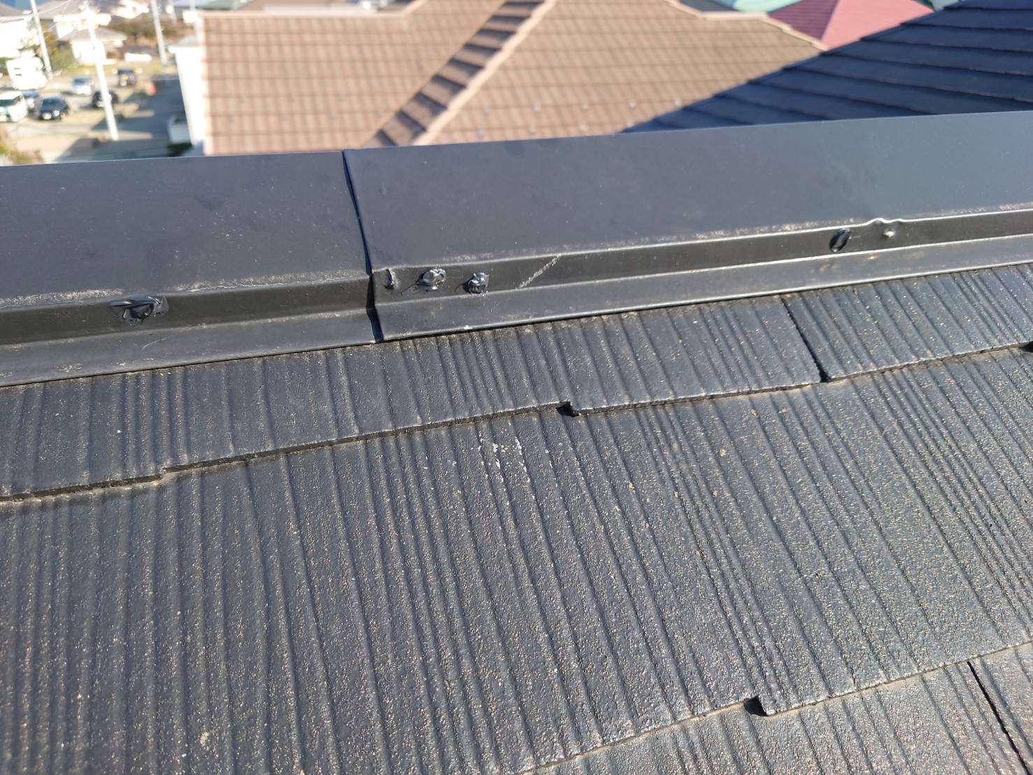 今回は下地も問題がなかったので、屋根板金部分の釘が抜けて(浮いて)しまっている箇所を、ビスで打ち込みコーキングで固定しました。
