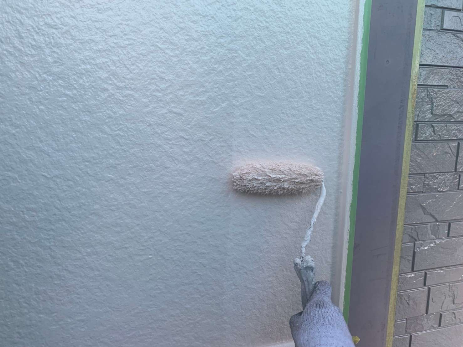 一部デザイン性のあるタイル(又はサイディング)を残した、外壁塗装。