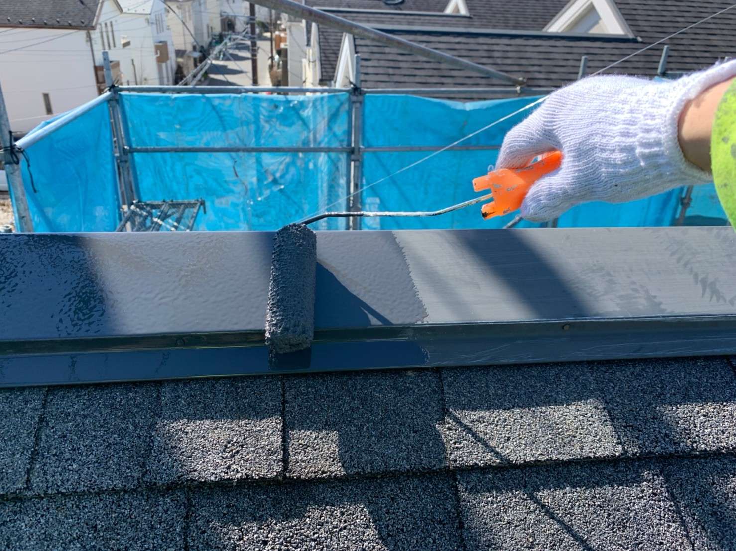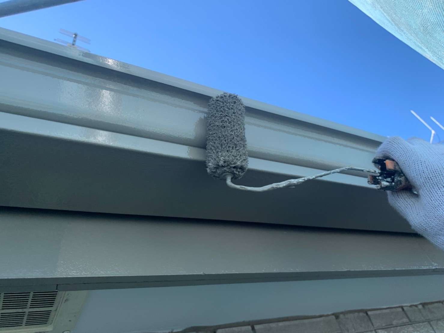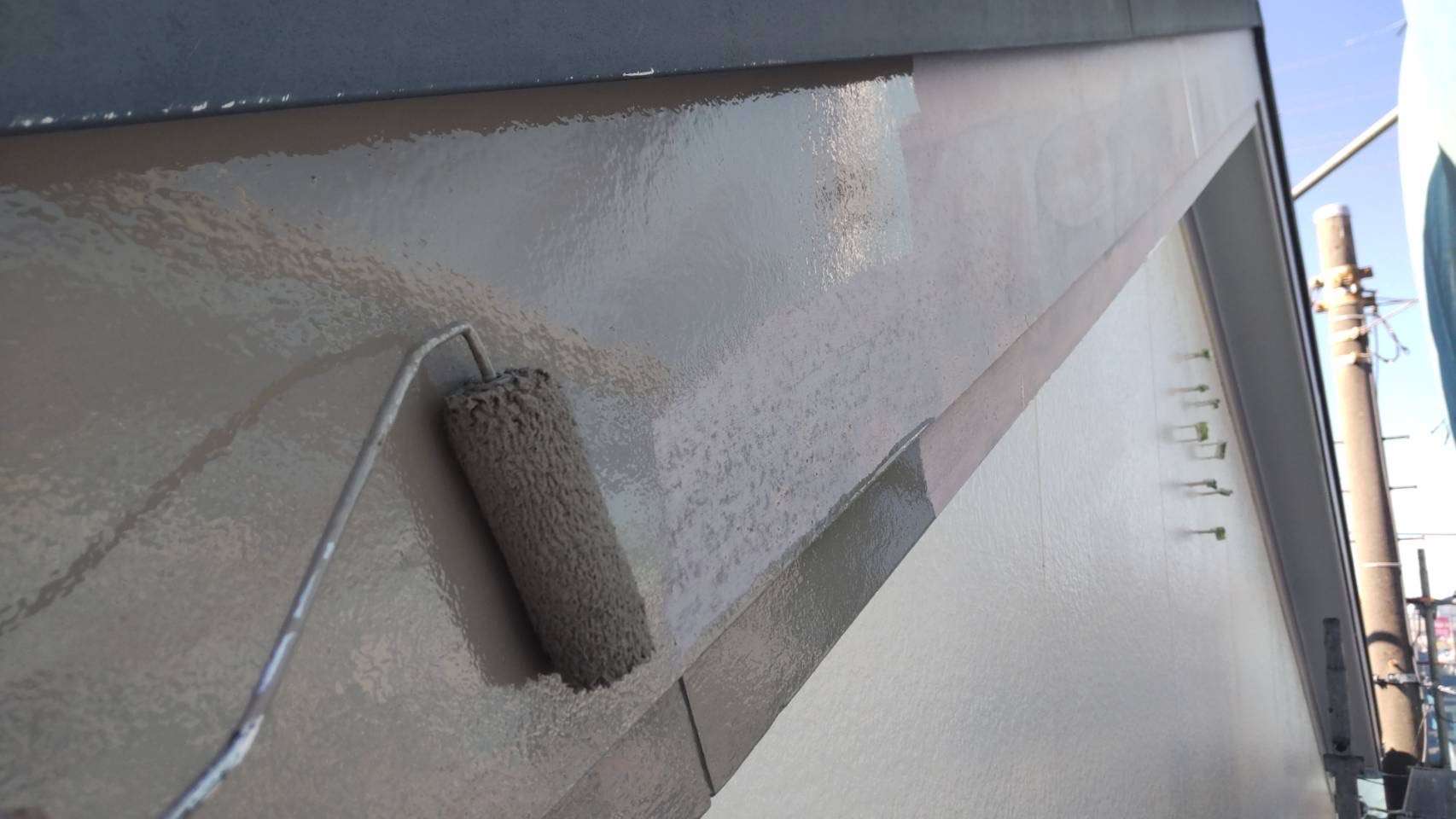 今回のS様邸では、外壁のみの塗装でしたが、屋根もお見積り時に調査させていただき現状では屋根の状態良く、塗装をオススメする必要がなかったので屋根塗装はしませんが、屋根の棟板金部だけは色褪せてしまっていたため、屋根は棟板金部のみ塗装をさせていただきました。