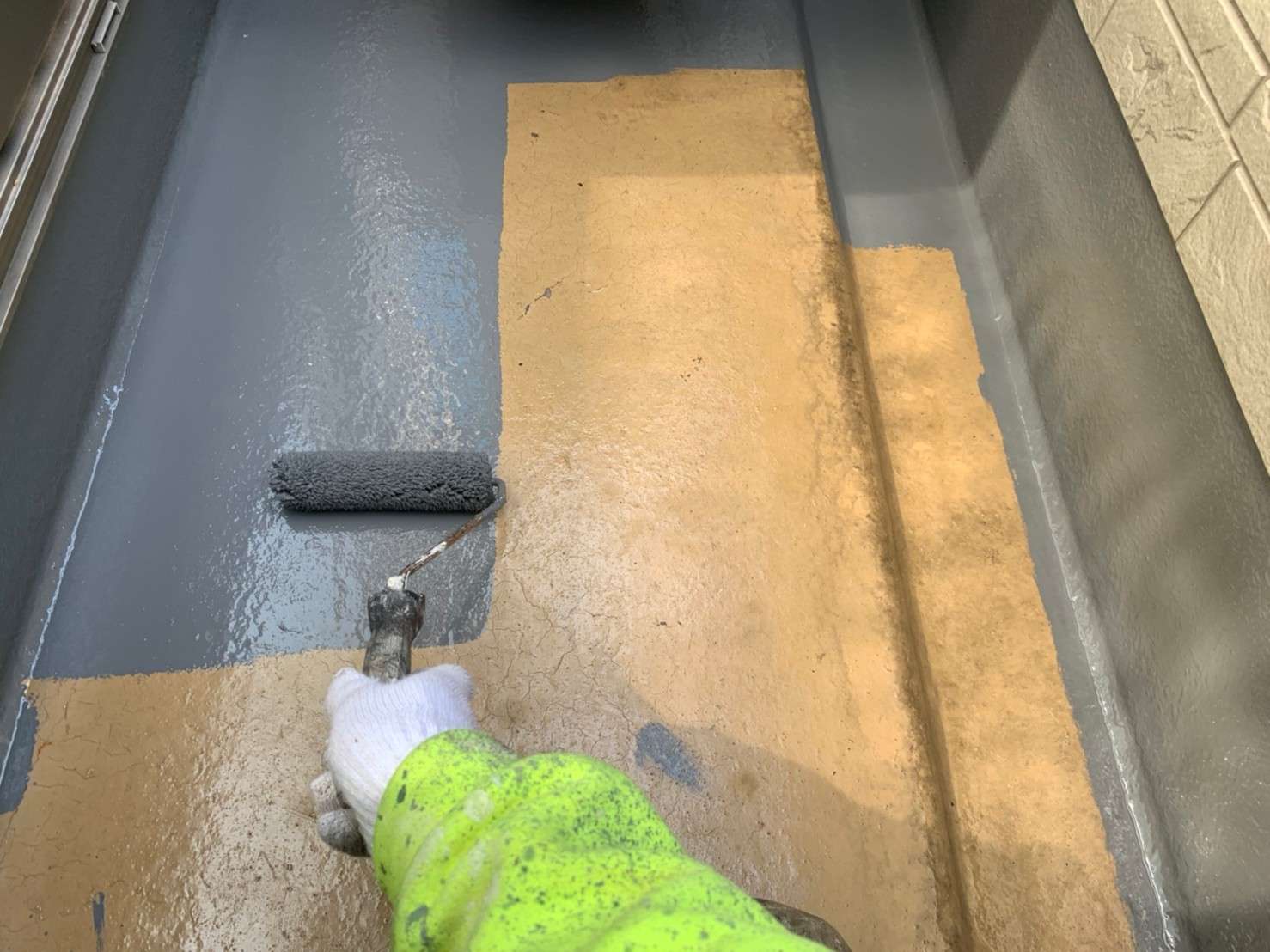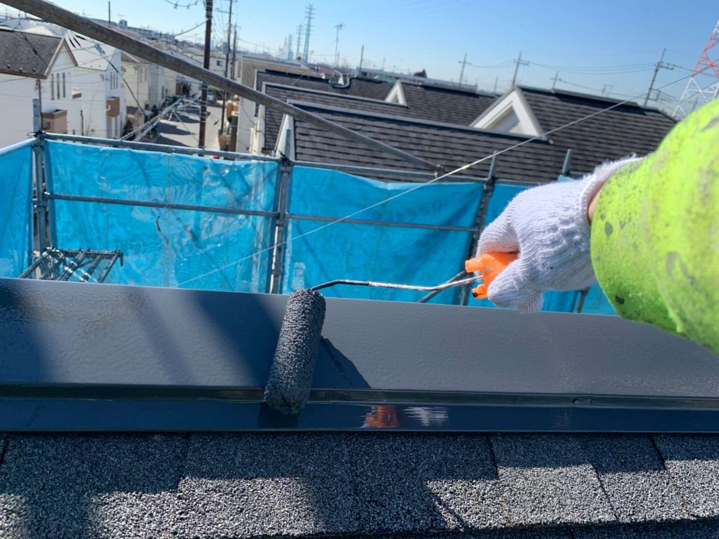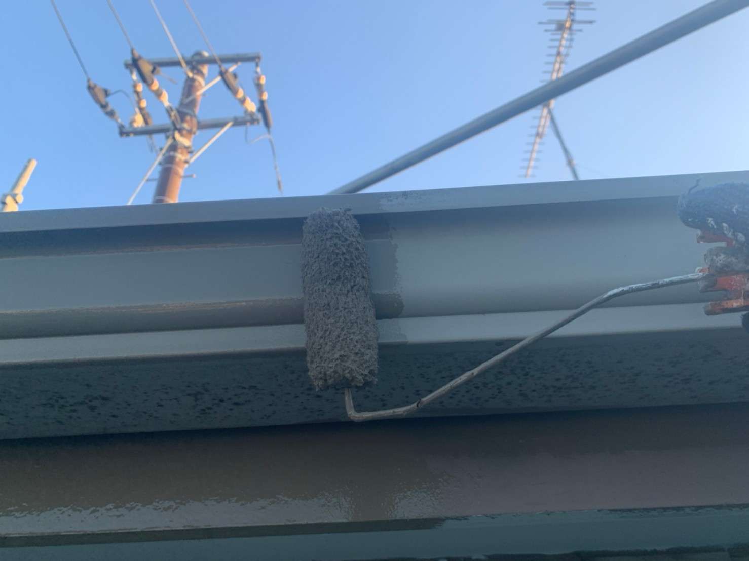 今回のS様邸では、外壁のみの塗装でしたが、屋根もお見積り時に調査させていただき現状では屋根の状態良く、塗装をオススメする必要がなかったので屋根塗装はしませんが、屋根の棟板金部だけは色褪せてしまっていたため、屋根は棟板金部のみ塗装をさせていただきました。