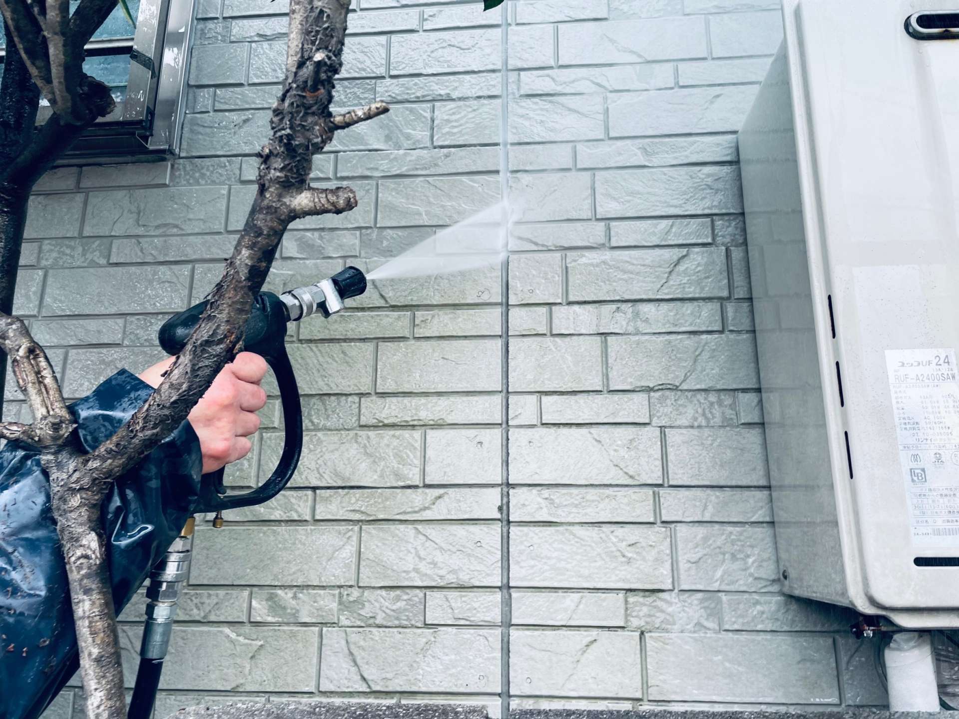 今のサイディングの柄や色味が気に入っているから、クリヤー塗装。