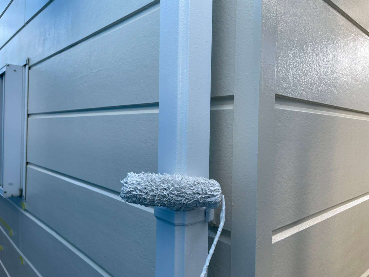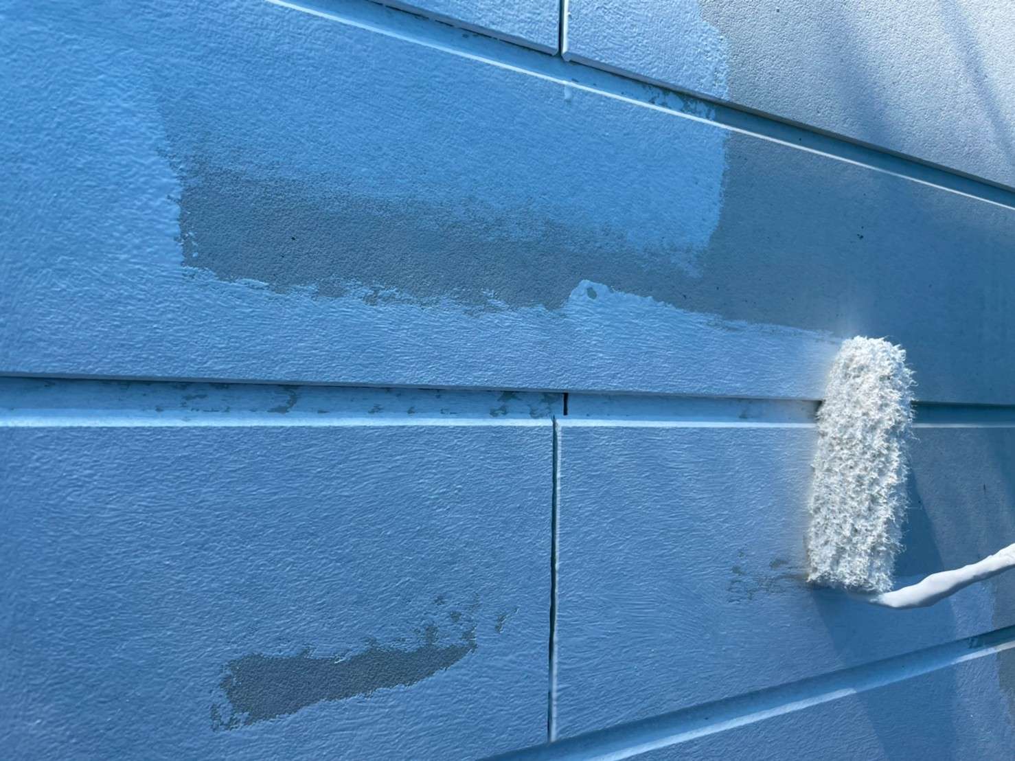 こちらの様な、面が平らになっている外壁の素材はとても凹凸が目立ちやすいため、ケレン作業などでしっかり下地処理をすることが大切になります。