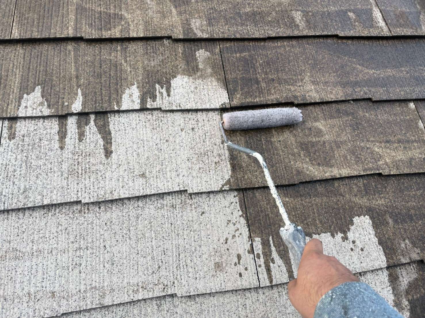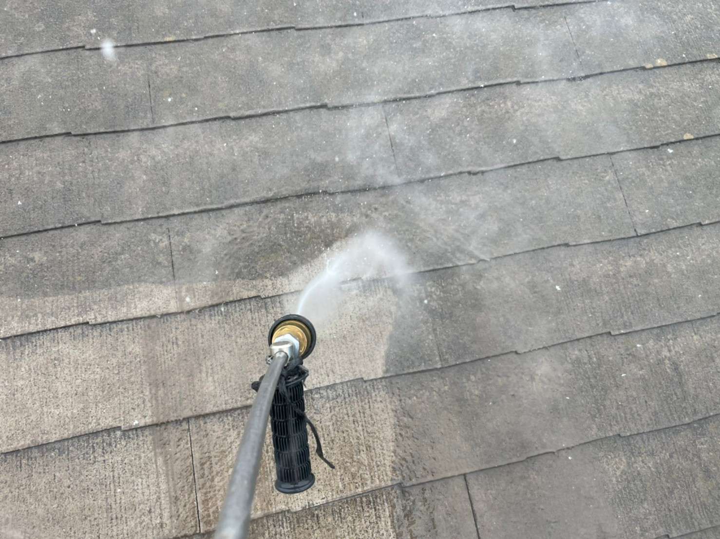 屋根や外壁にコケや藻・カビなどが付着したまま塗装をしてしまうと、塗膜の剝がれや浮きの原因になってしまうので、高圧洗浄でしっかりと汚れを落とします。