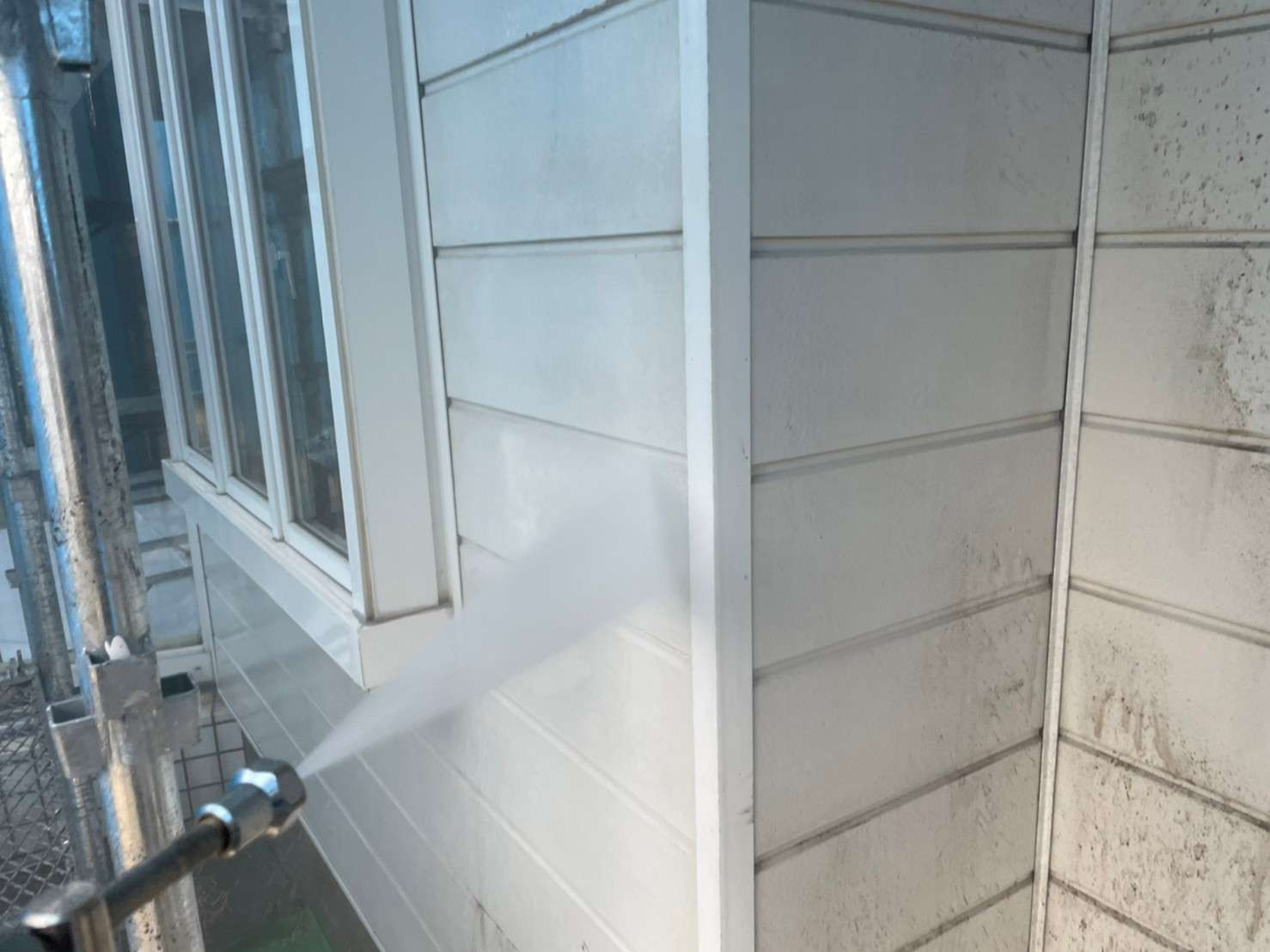 その際に外壁の劣化による塗膜の剝がれなども念入りに高圧洗浄で落としておきます。
