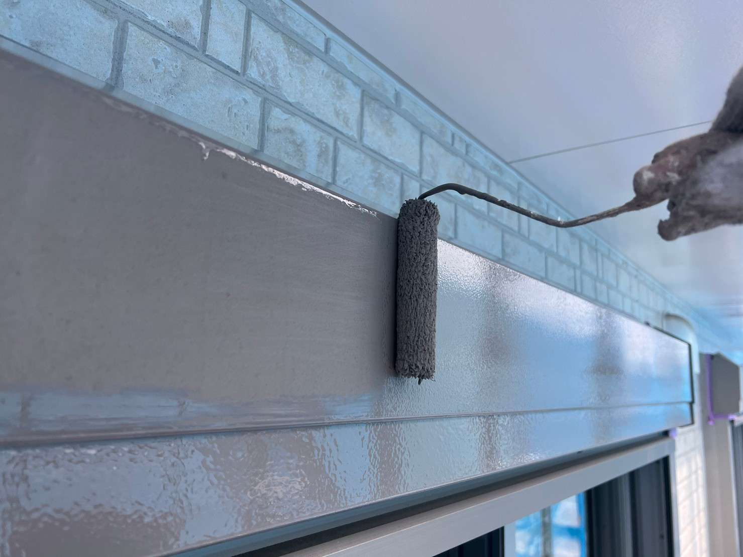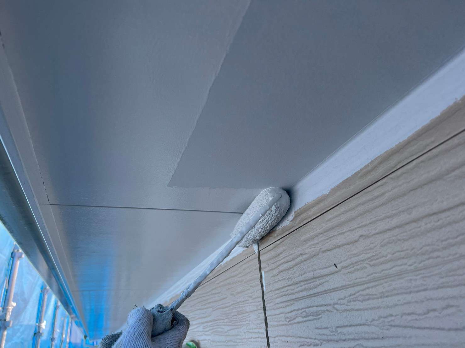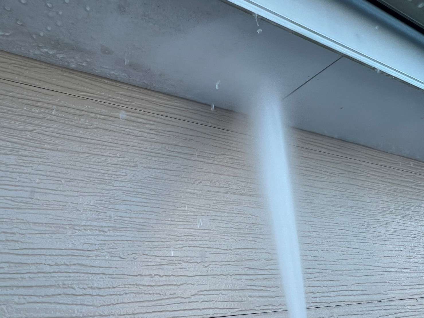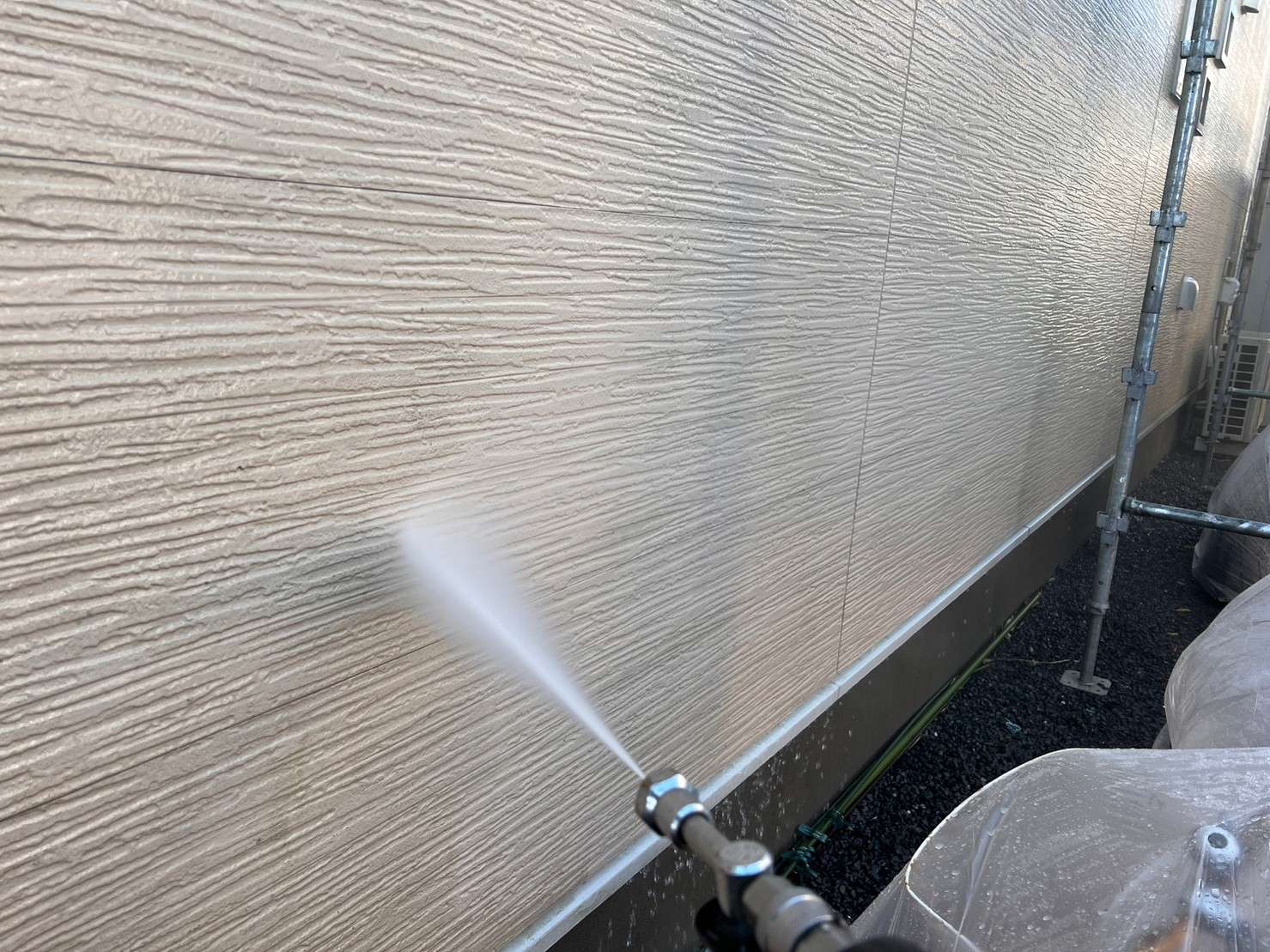 今回のM様邸では、一部のサイディングの柄を残したいとのご要望があり、一部はクリヤー(透明)での塗装、一部以外は塗装になりました。