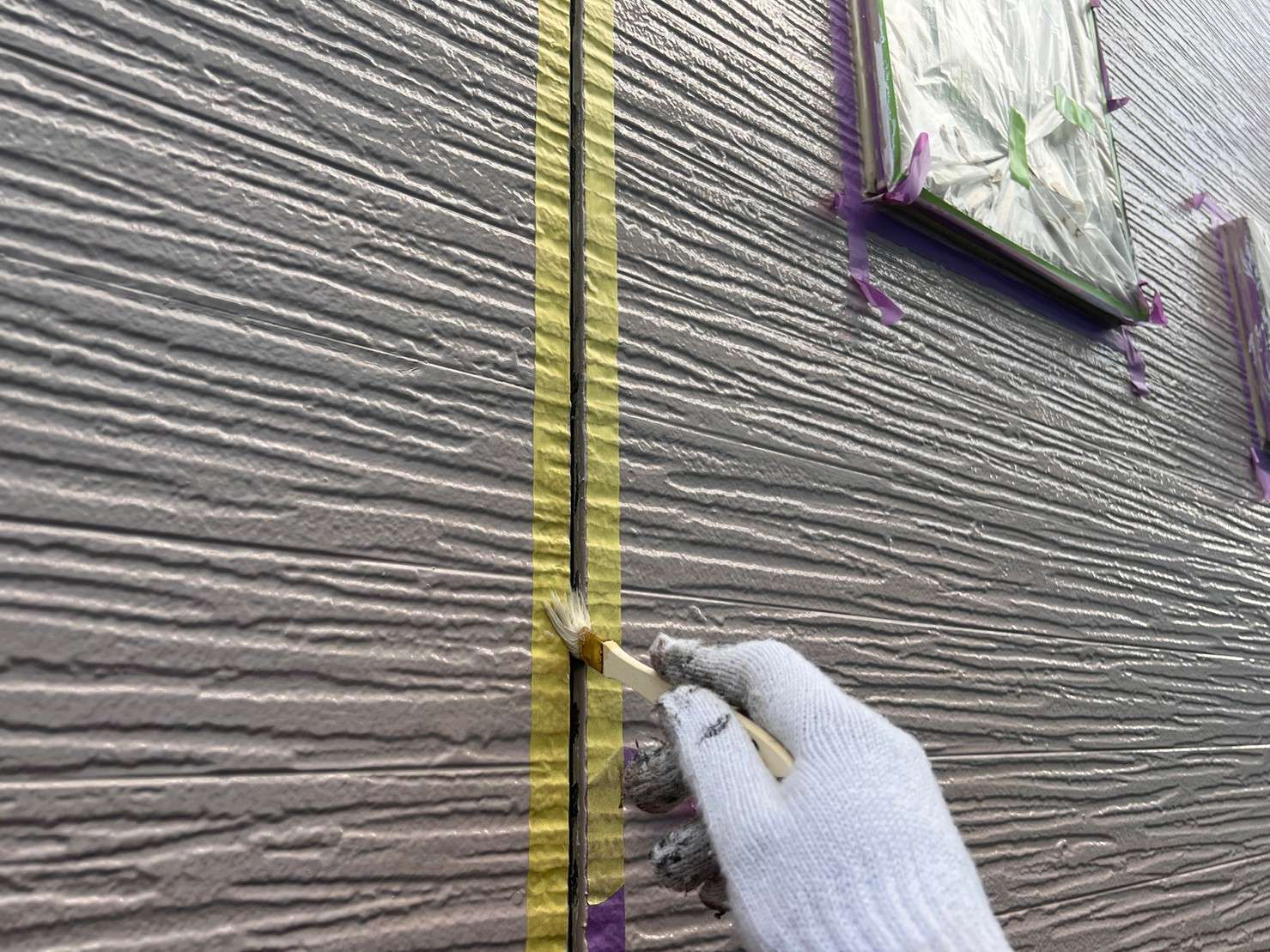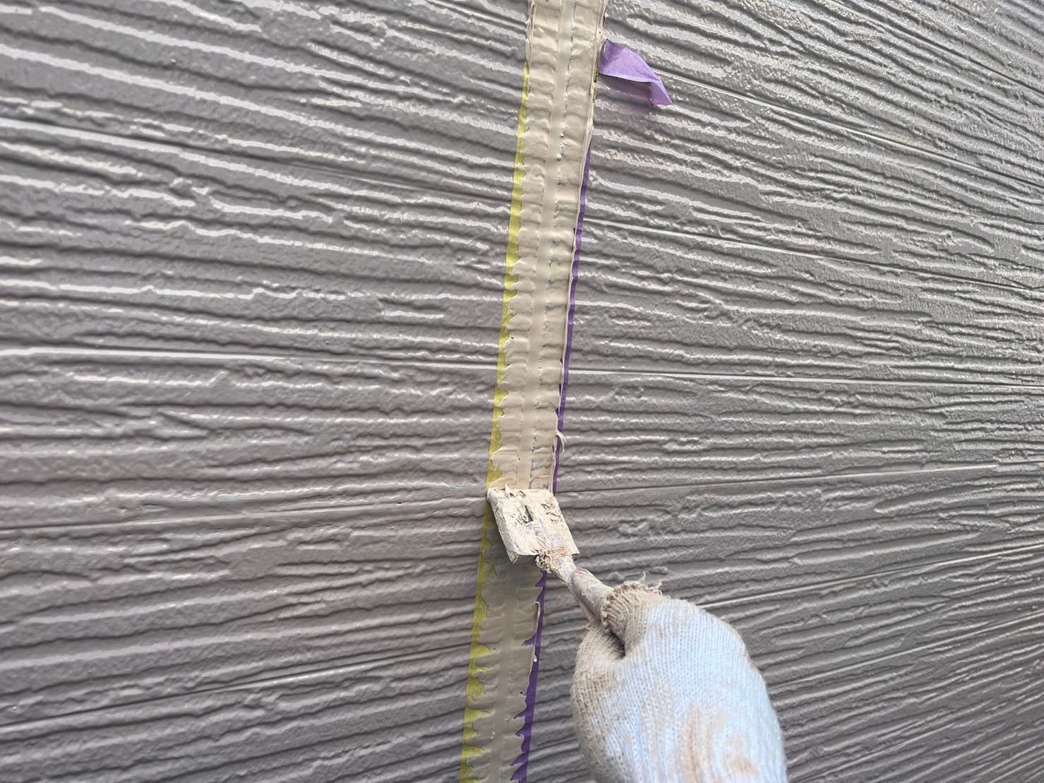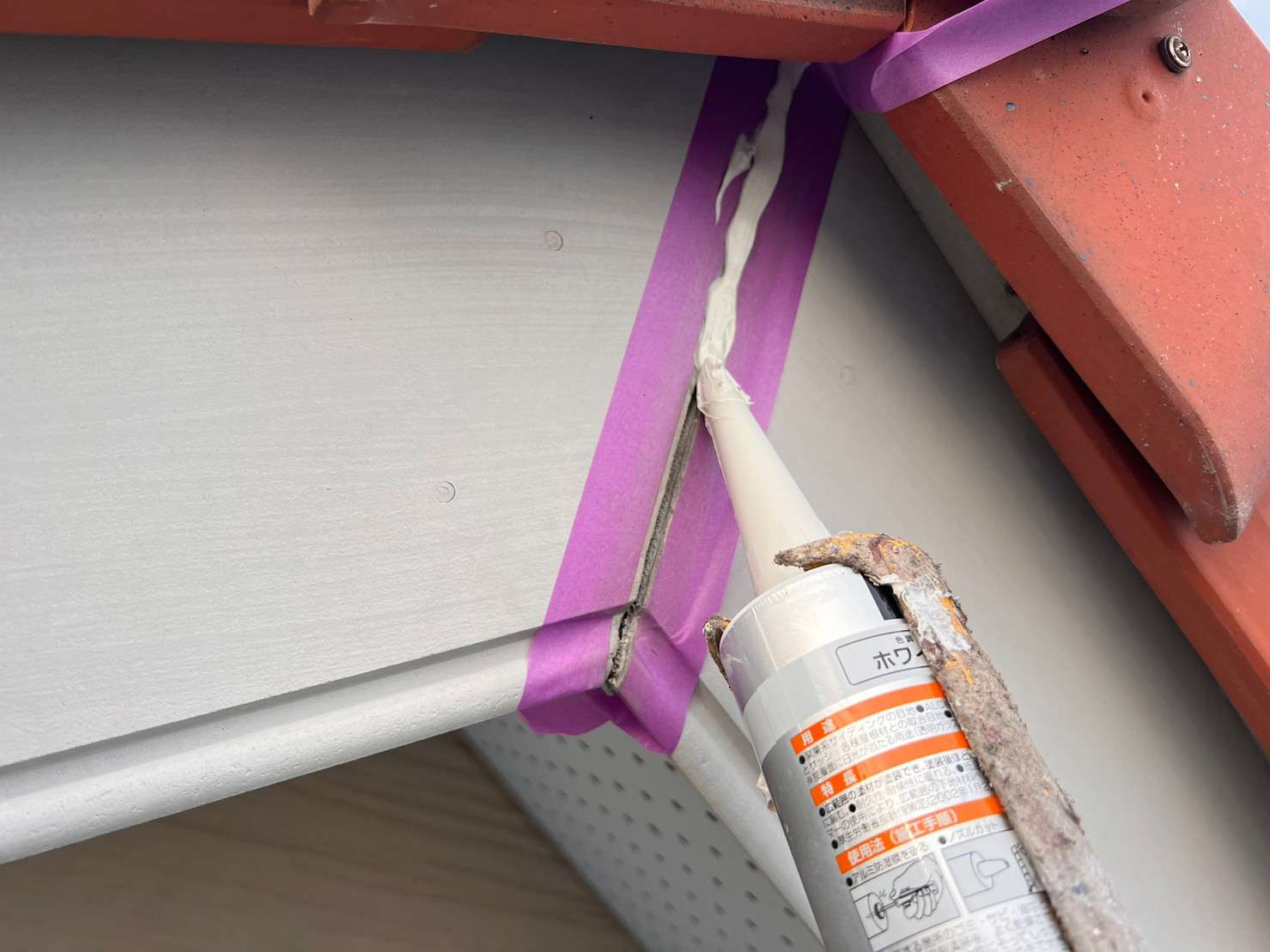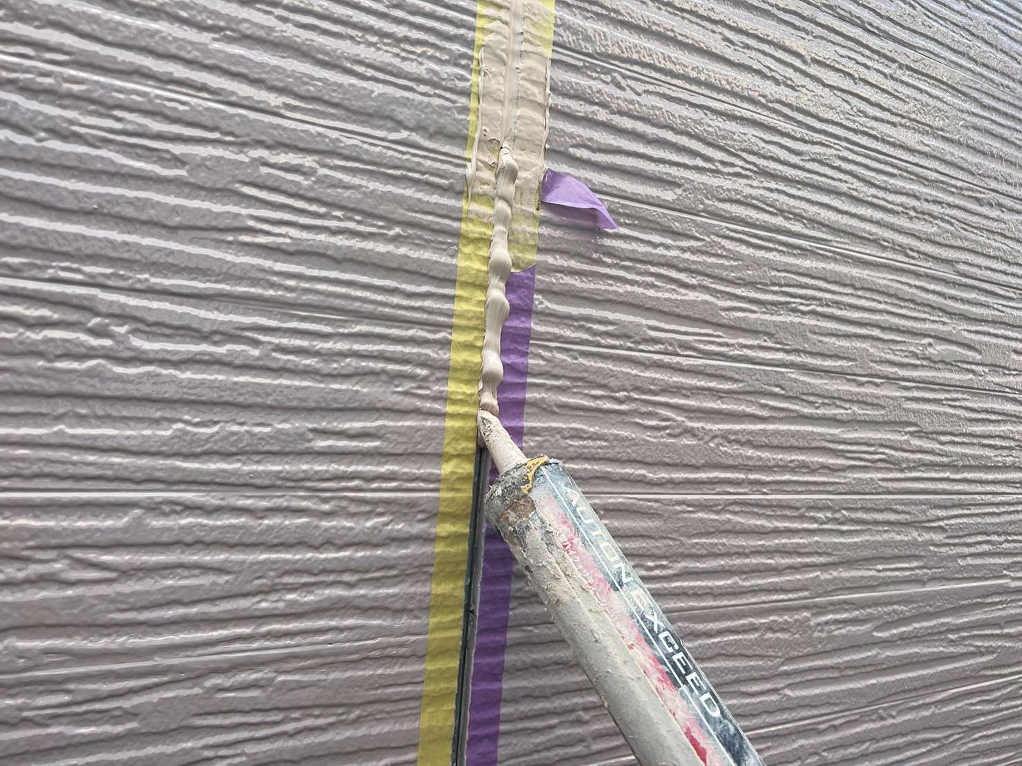 フッ素塗料で塗装の際は、外壁塗装を塗った後でコーキングは後打ちの施工します。
