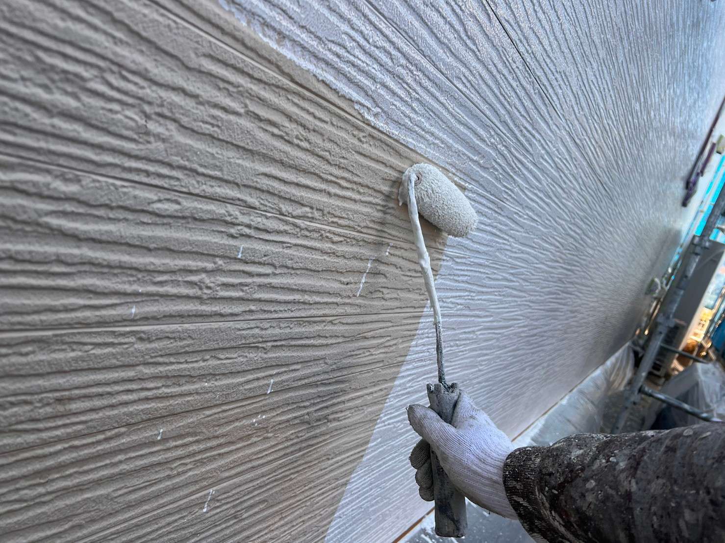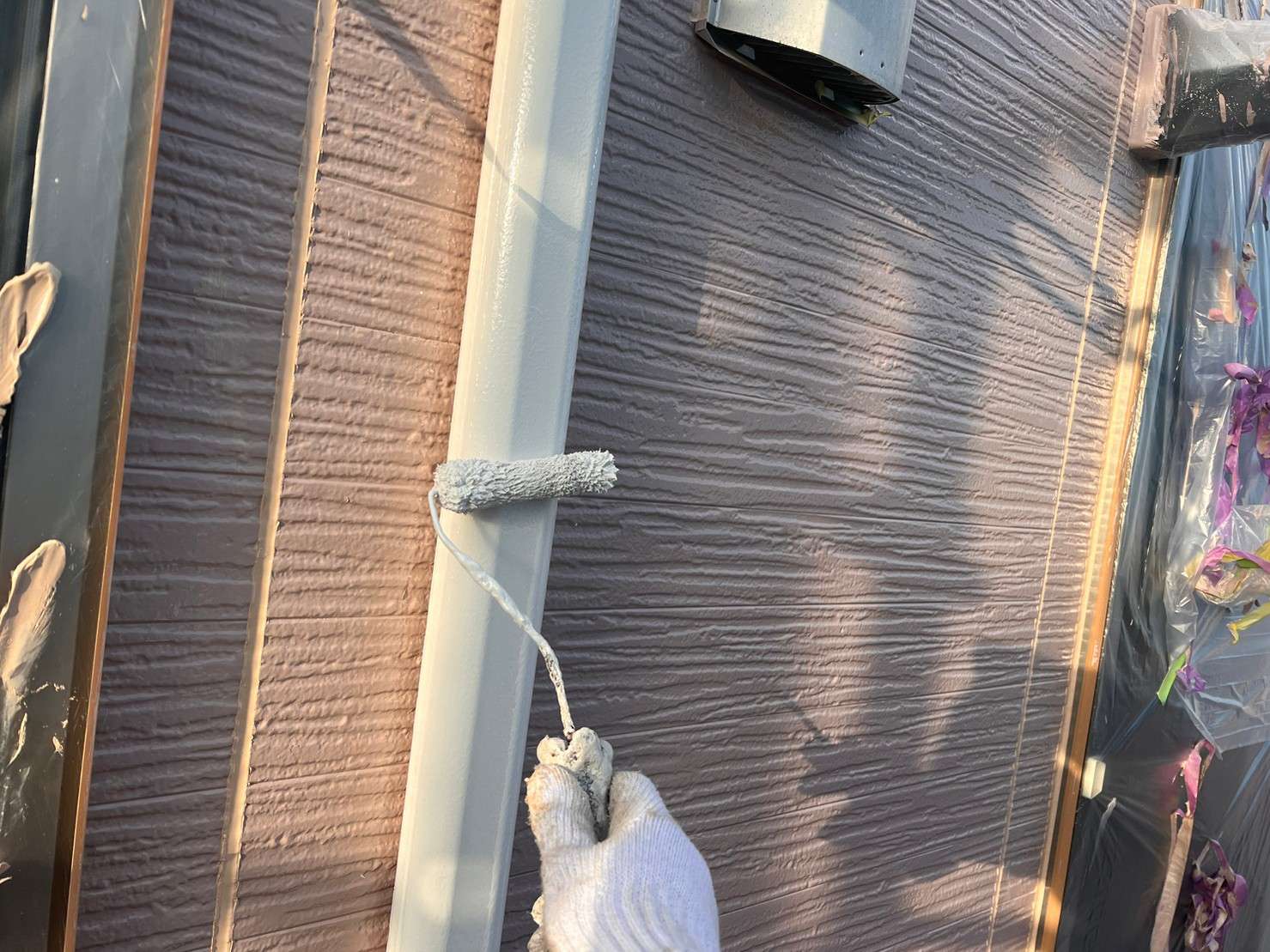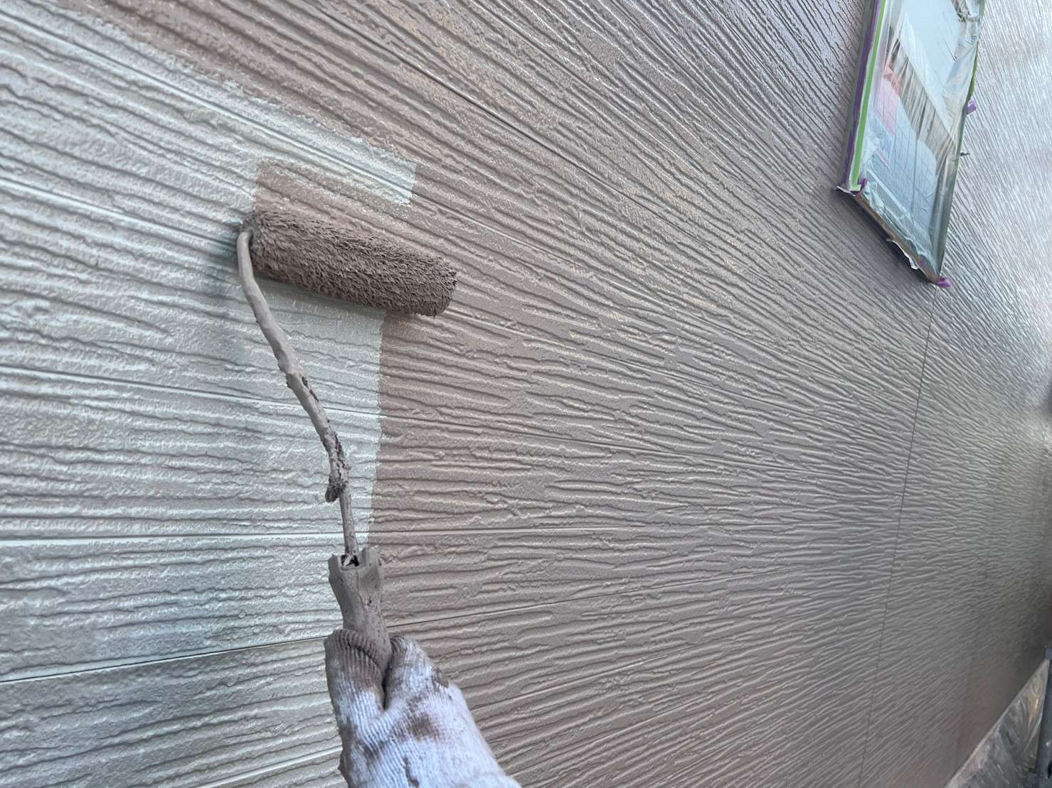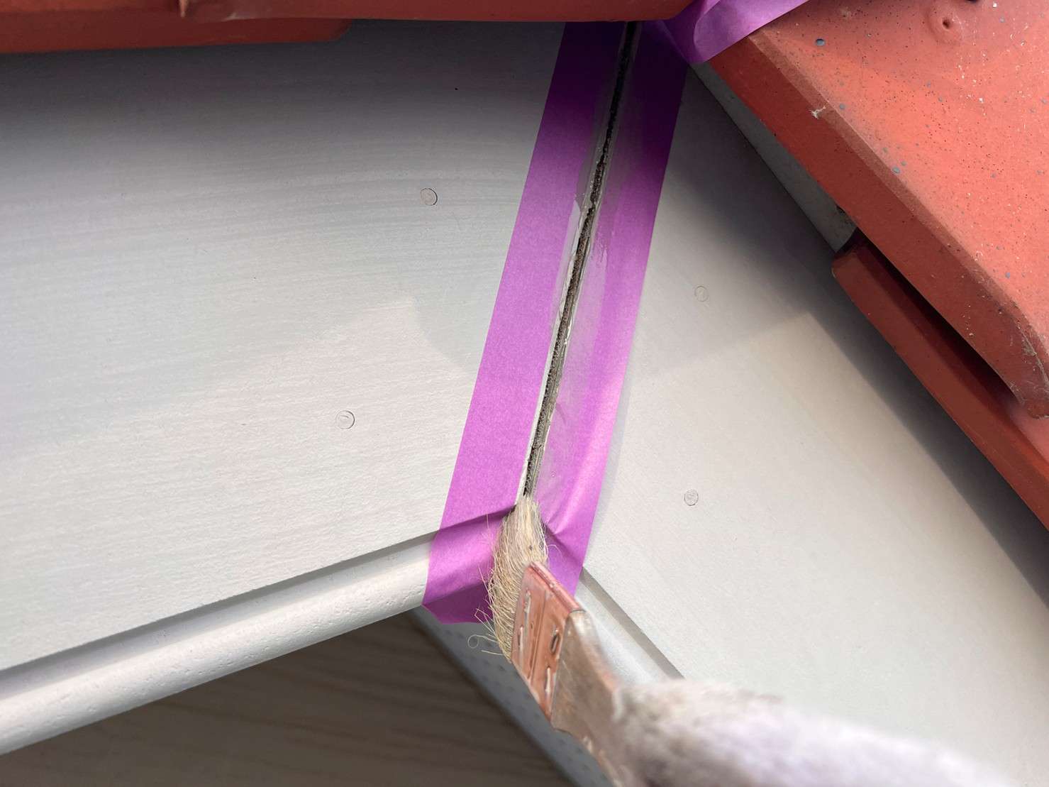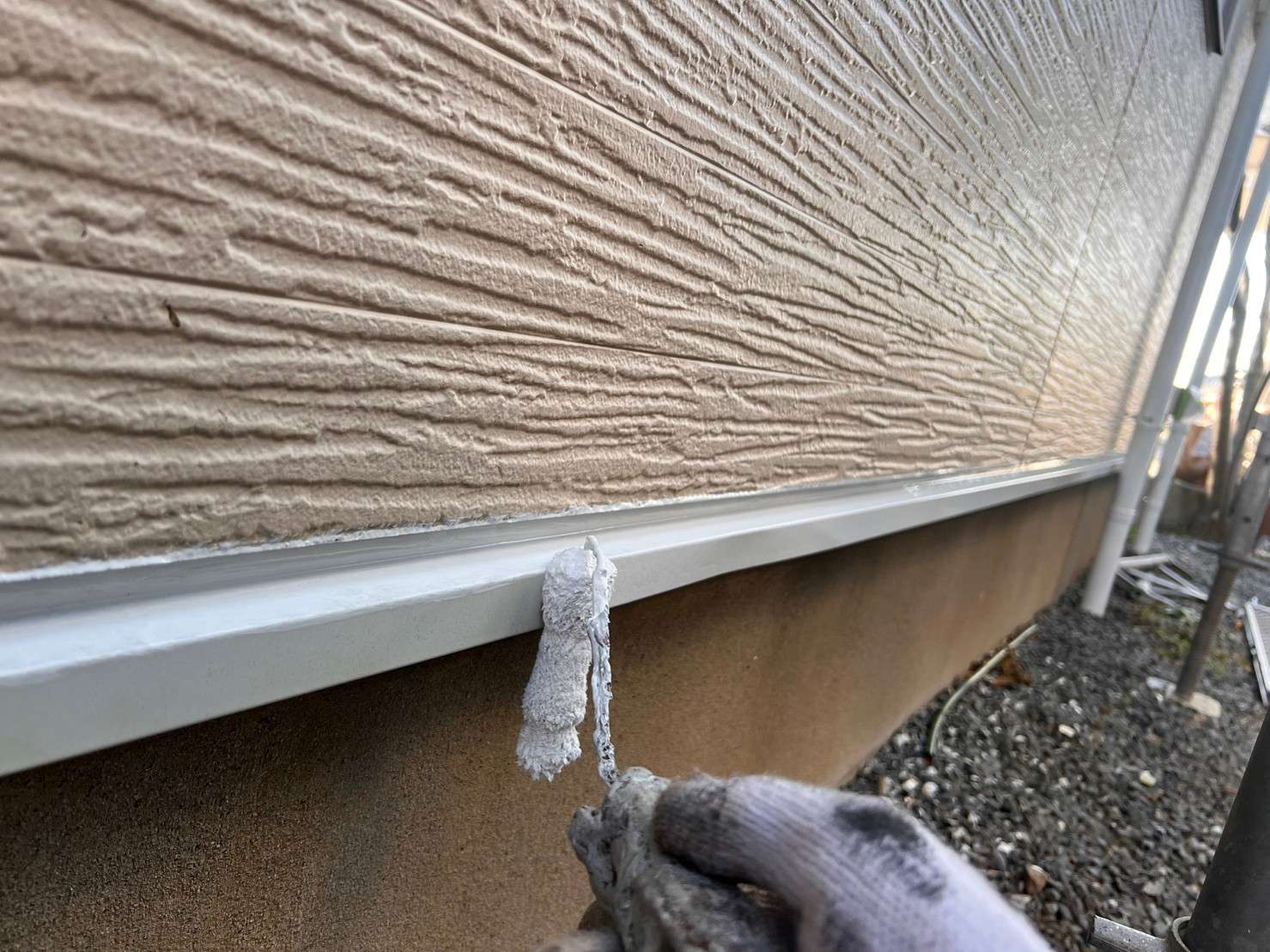 フッ素塗料で塗装の際は、外壁塗装を塗った後でコーキングは後打ちの施工します。