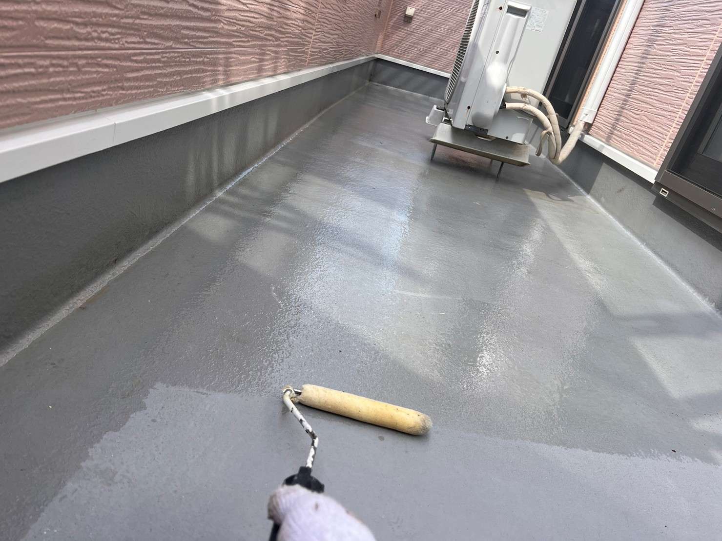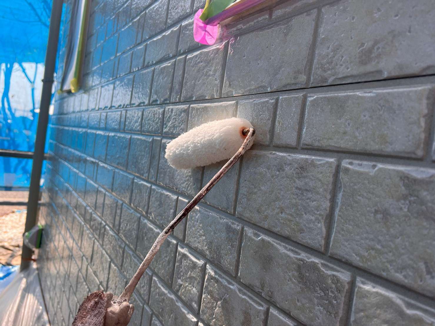 今回M様のご要望で、キクスイSPパワーフッ素を使用しましたが、フッ素塗料でのコーキングの際はひび割れの可能性があるので後打ちという施工で工事を進めさせていただきました。