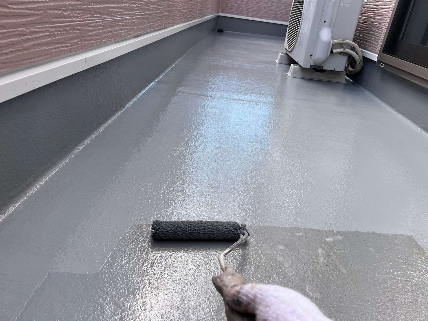 コーキング打ち替え工事は、通常は塗装前に打ち替えをしますが、フッ素塗料の場合、コーキングの上に弾性タイプのフッ素塗料を塗ってしまうとコーキングの上の塗膜がひび割れるリスクがあります。