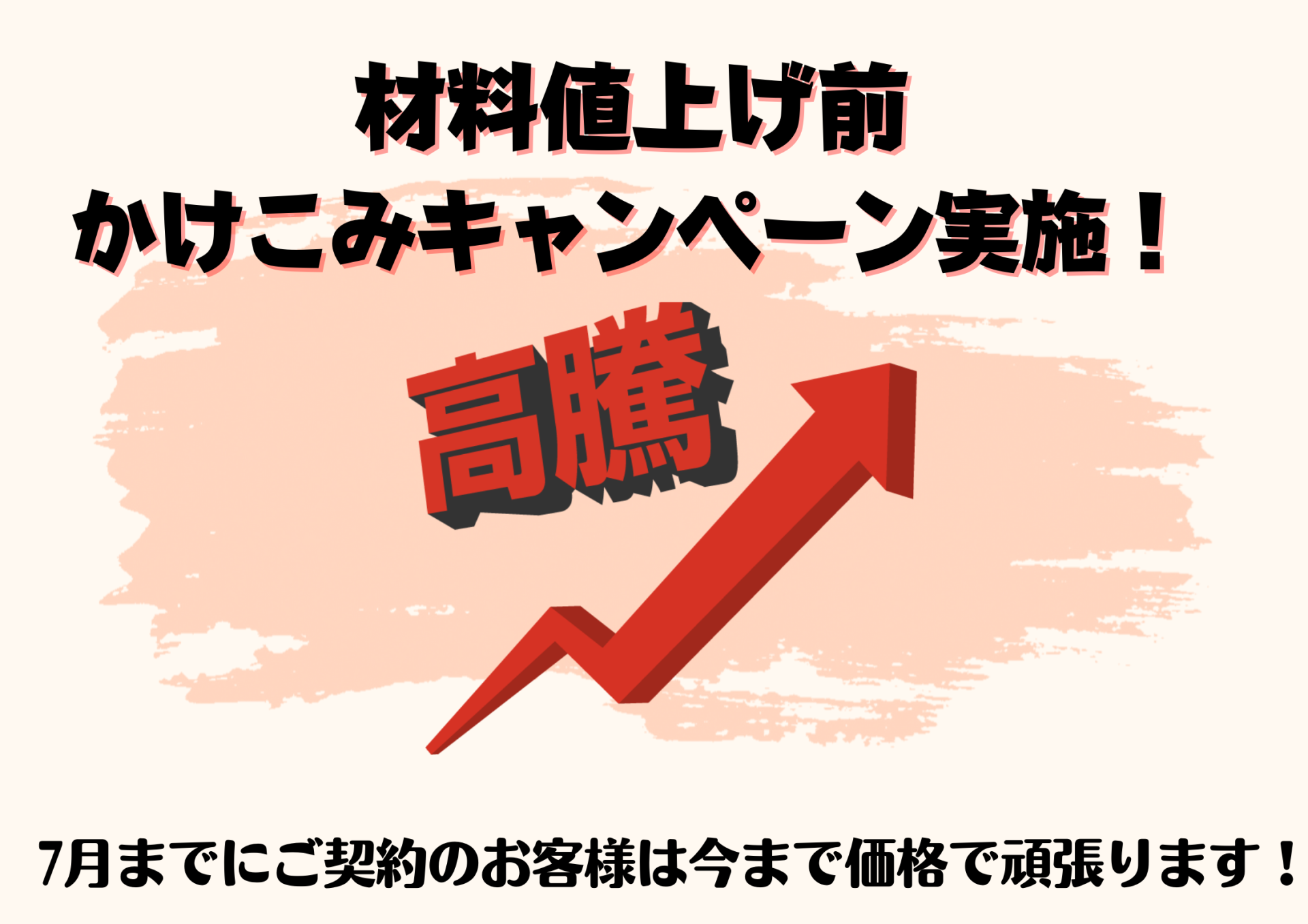 7月までにお見積り依頼〜ご契約いただいたお客様には、外壁塗装工事・屋根塗装工事等、塗装工事全般、今までの価格で頑張らせていただきます!