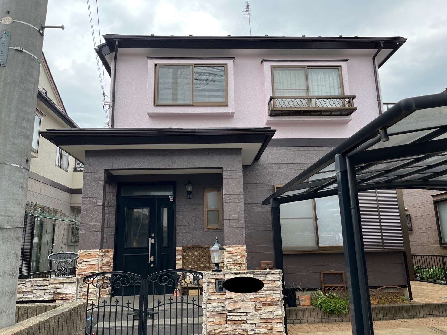 外壁上部はピンク系・外壁下部はアッシュ系ブラウンで、明るく可愛らい仕上がりになりました。