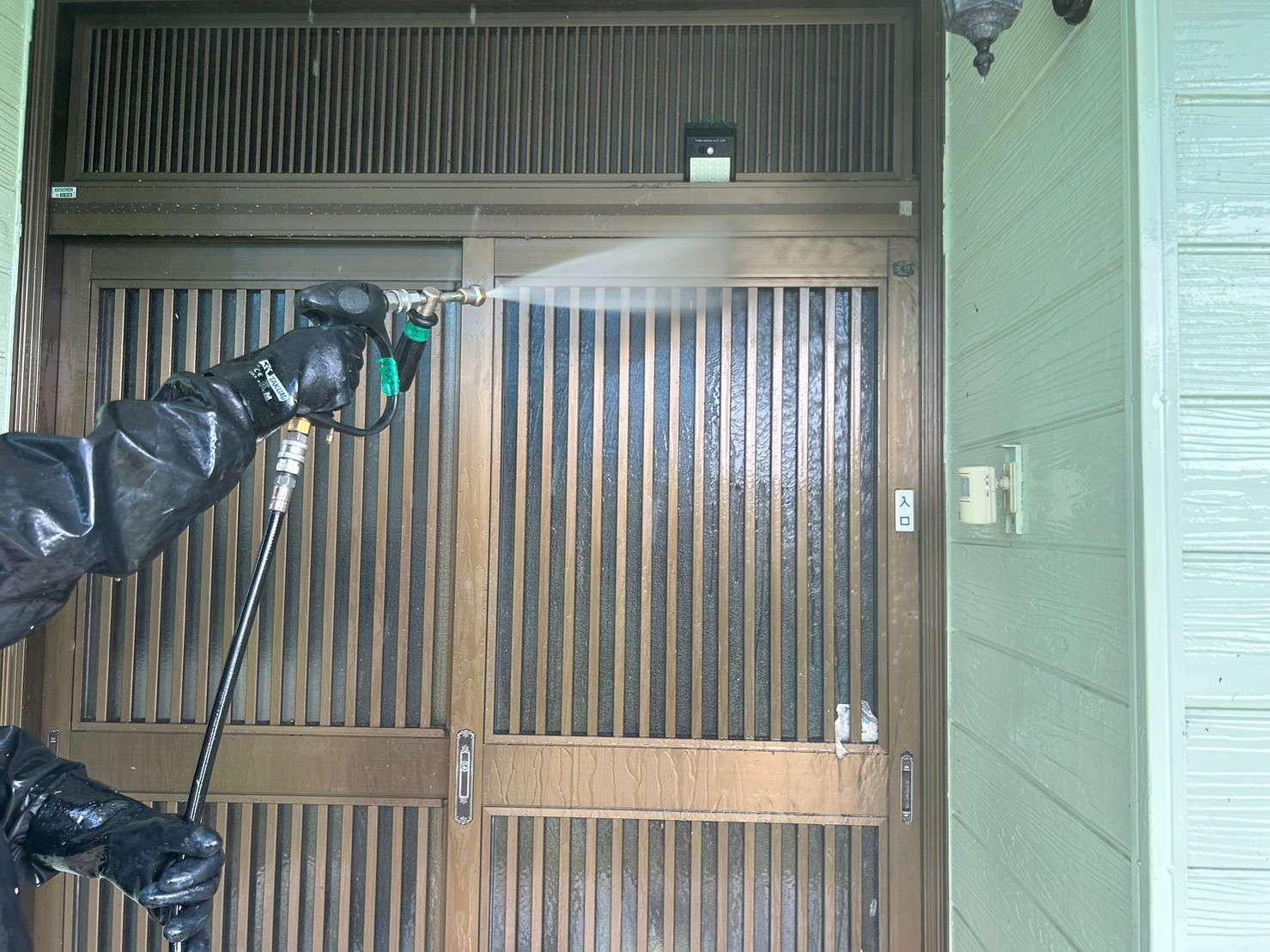 外壁、雨樋、破風板、軒天井、雨戸や戸袋、玄関扉など、塗装する箇所はもちろん、塗装しない箇所もしっかり洗浄します。