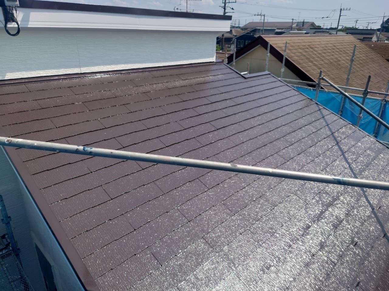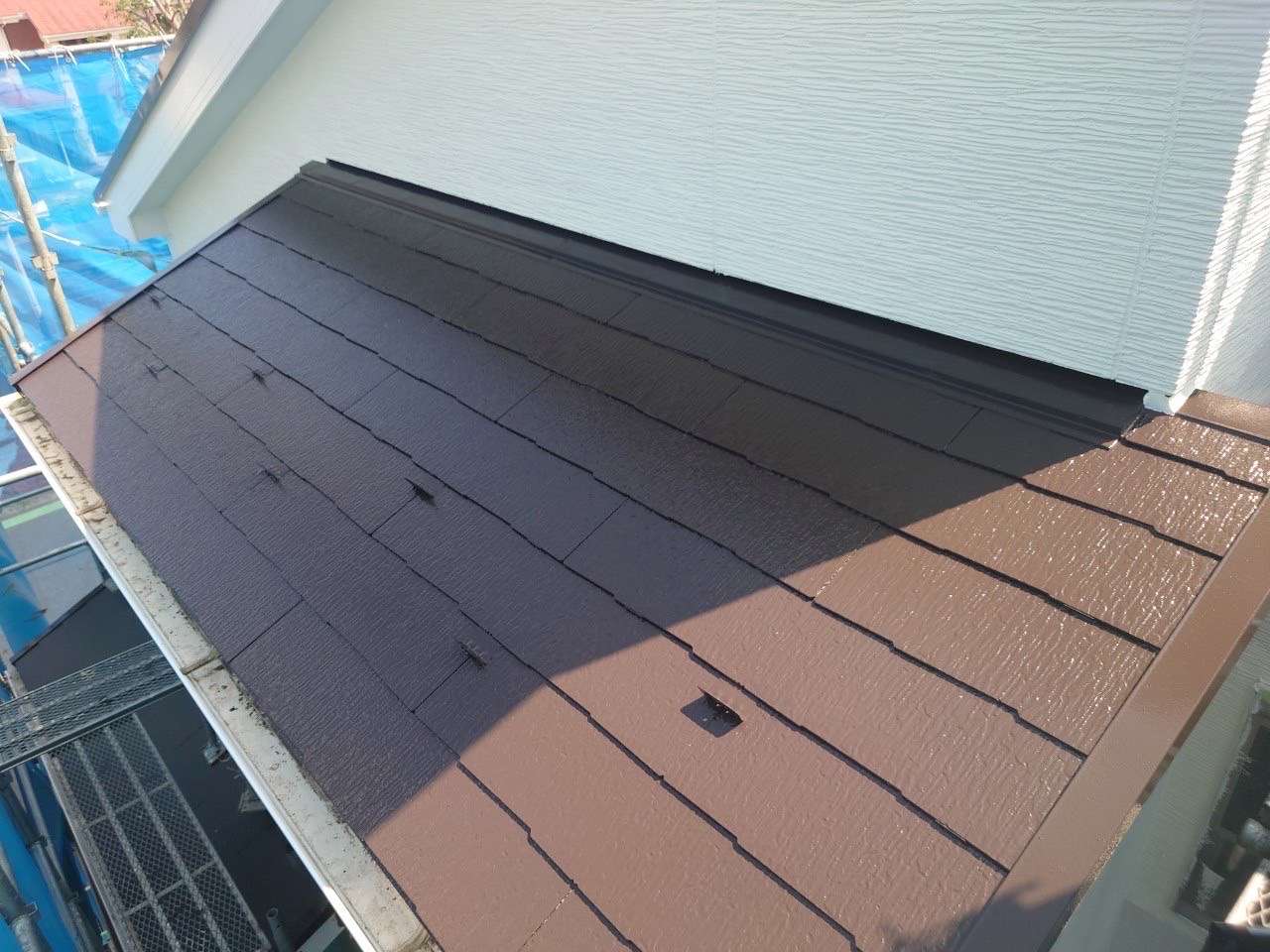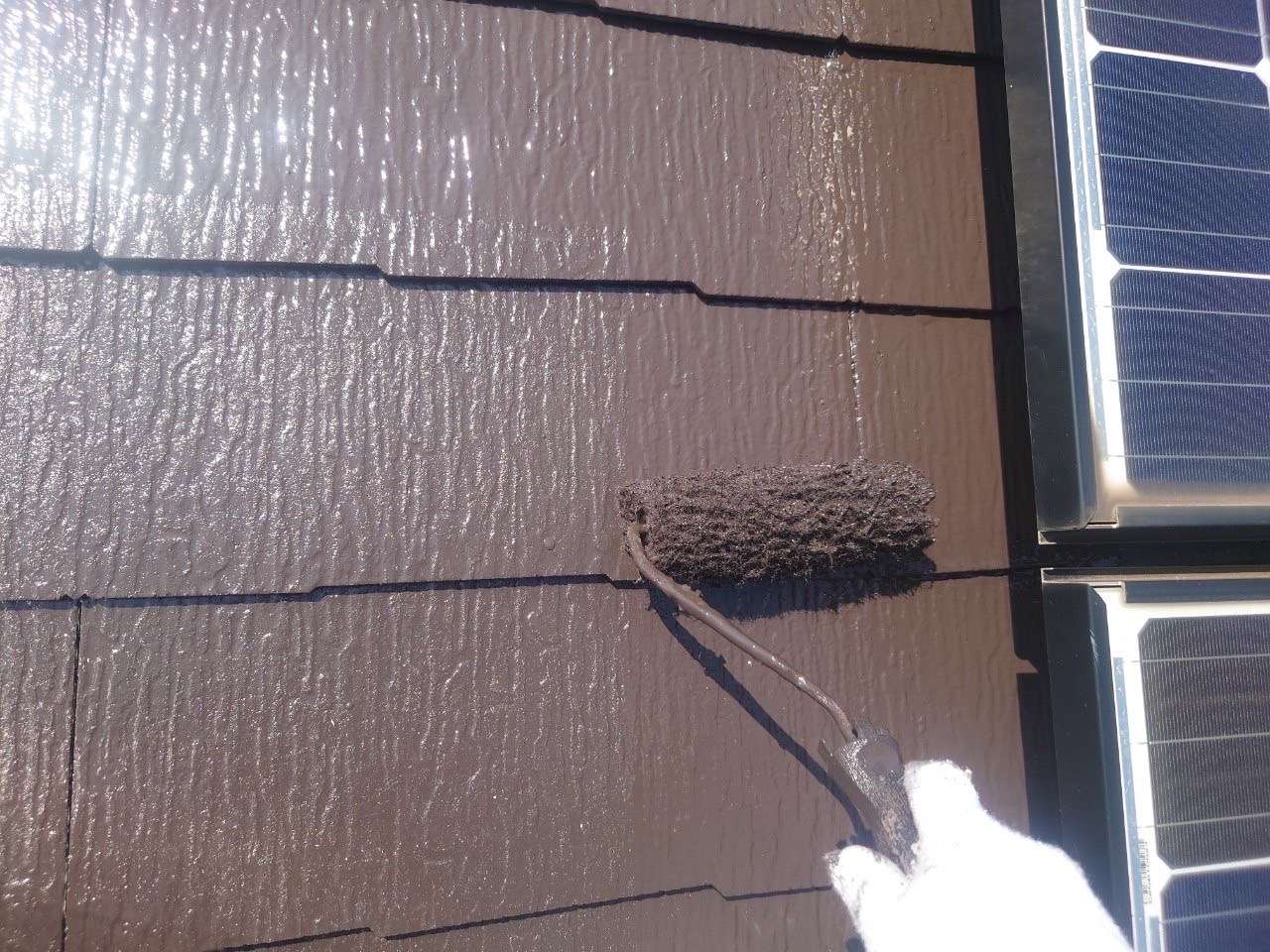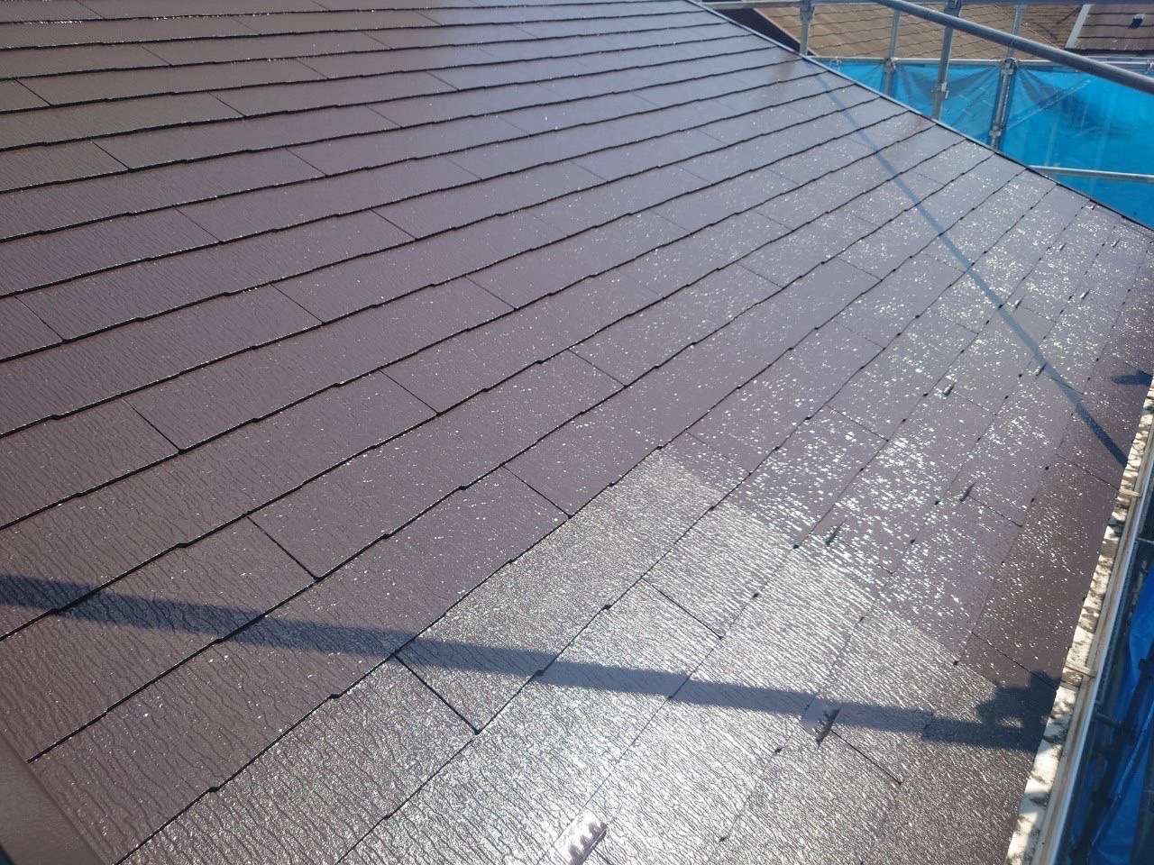 暑い日が続きますが、本日は暑さに負けず屋根塗装の上塗りが完了しました♪
