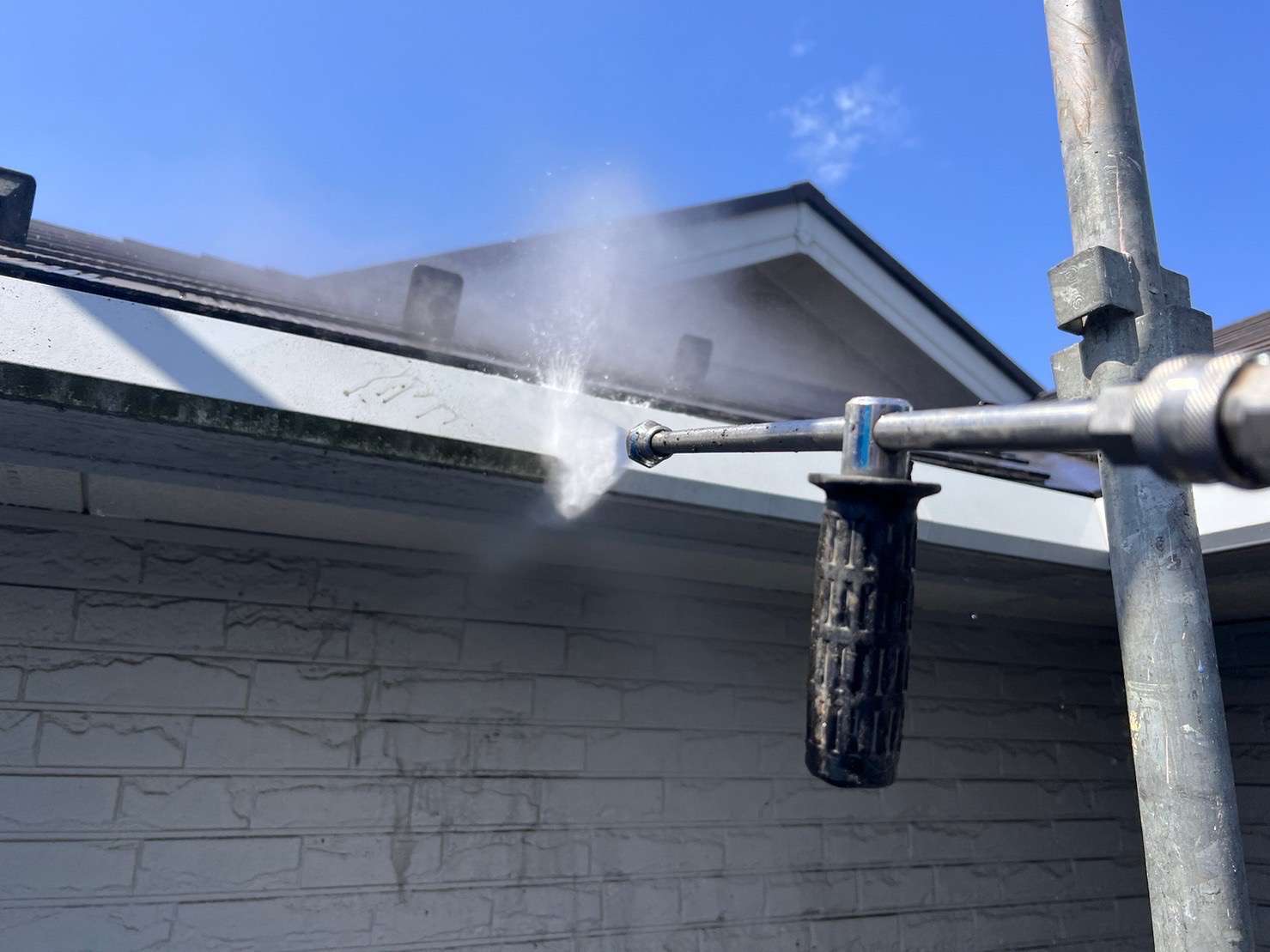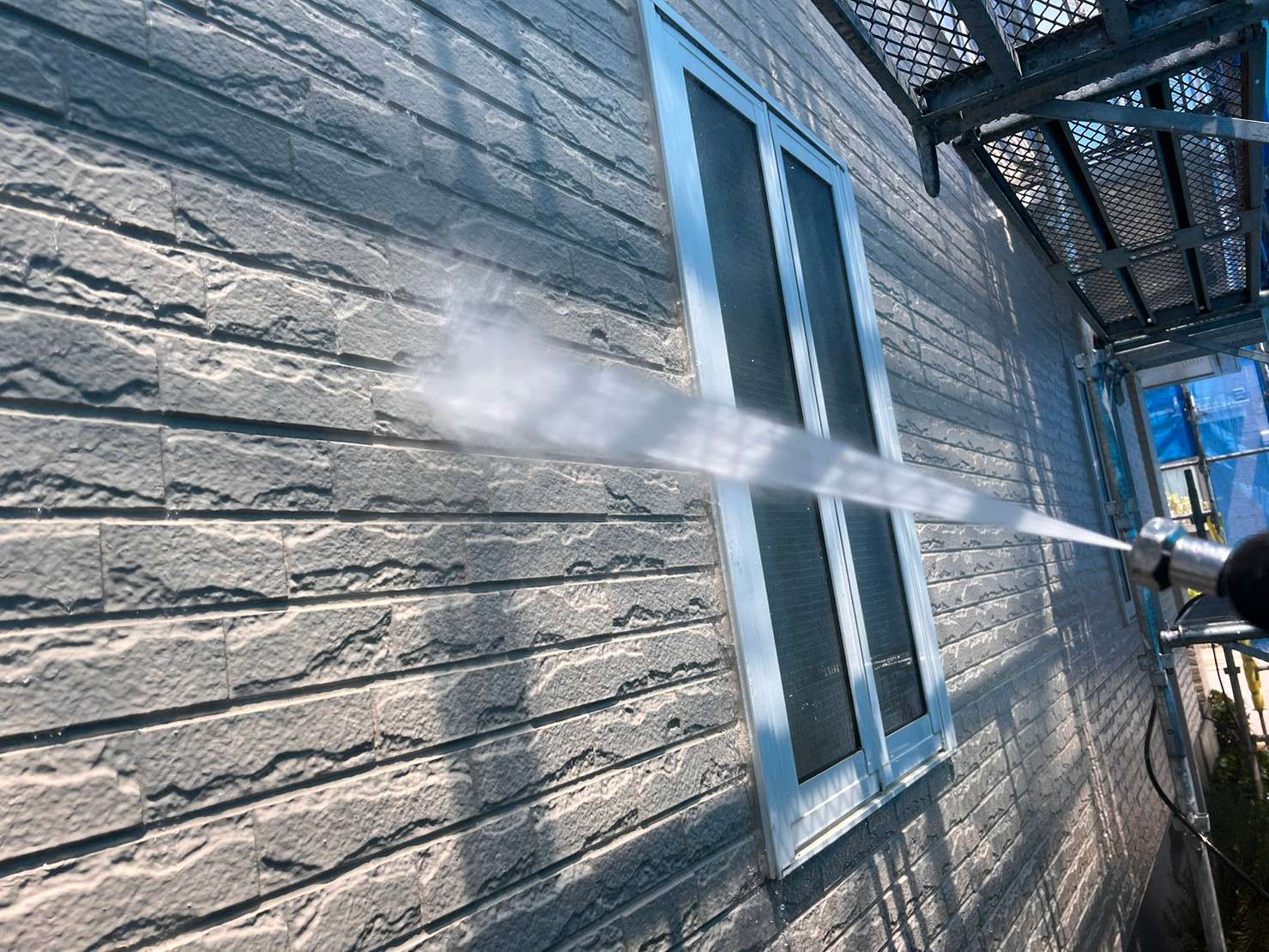 高圧洗浄作業は、水しぶきなど飛ぶ為、ご近隣様への配慮が大切になります。
