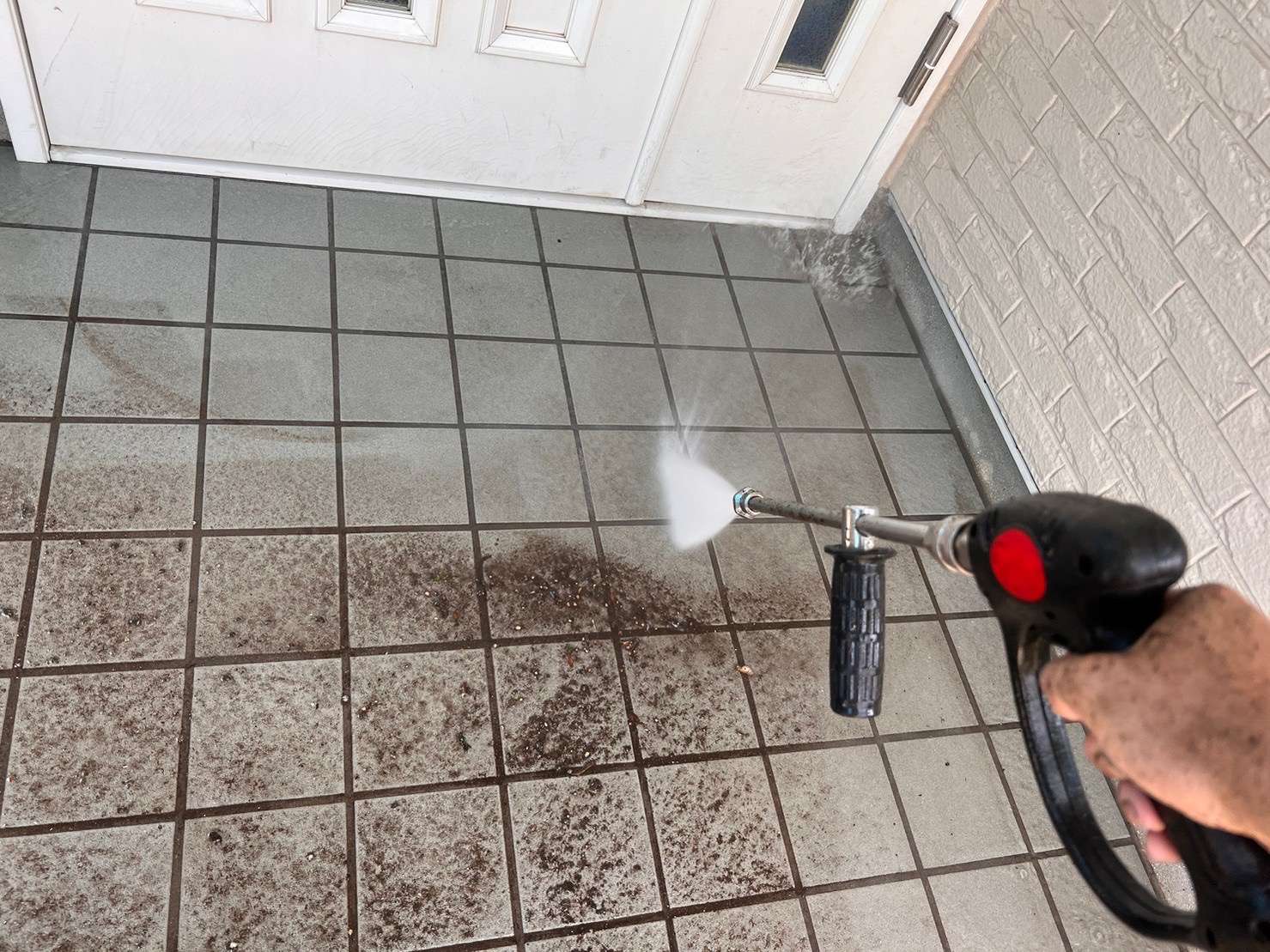 塗装する箇所、しない箇所もコケや藻、汚れ、古い塗膜などしっかり洗い流します。