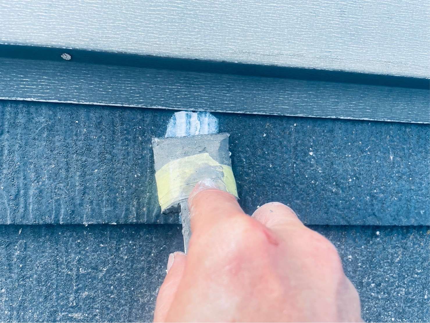 本日の作業は、屋根のクラック補修や、コーキング(シーリング)打ち替えの為、古いコーキングを撤去です。