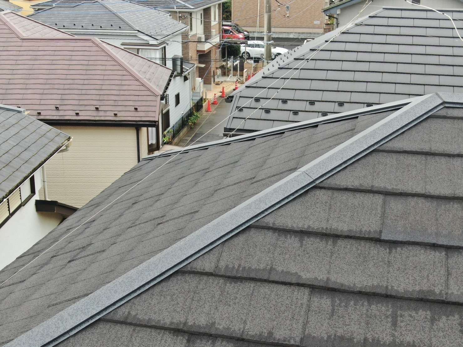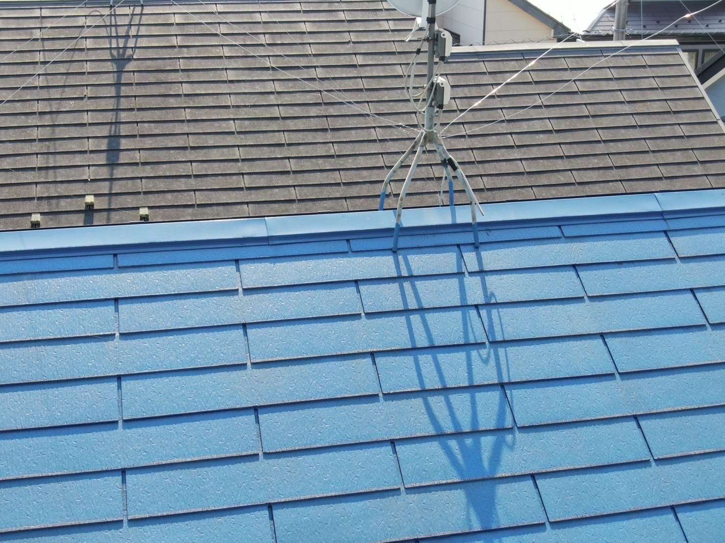 次の画像は、「屋根の棟板金が浮いている」と訪問業者が来たお客様の屋根の画像になります。