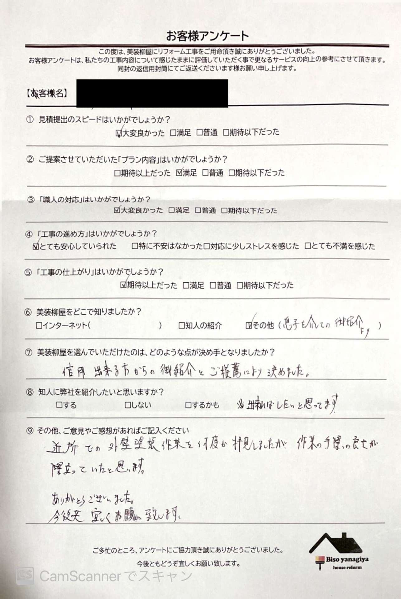 本日は、先月施工したI様から、「お客様アンケート」が届きましたのでご紹介させていただきます。
