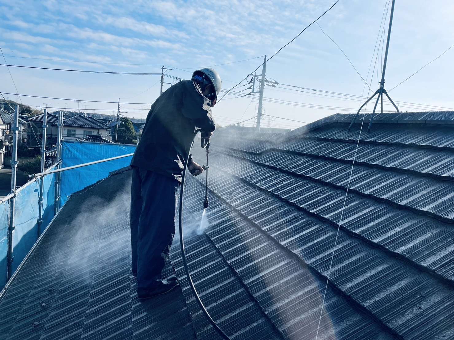 外壁と屋根を優先して、養生をするためです。