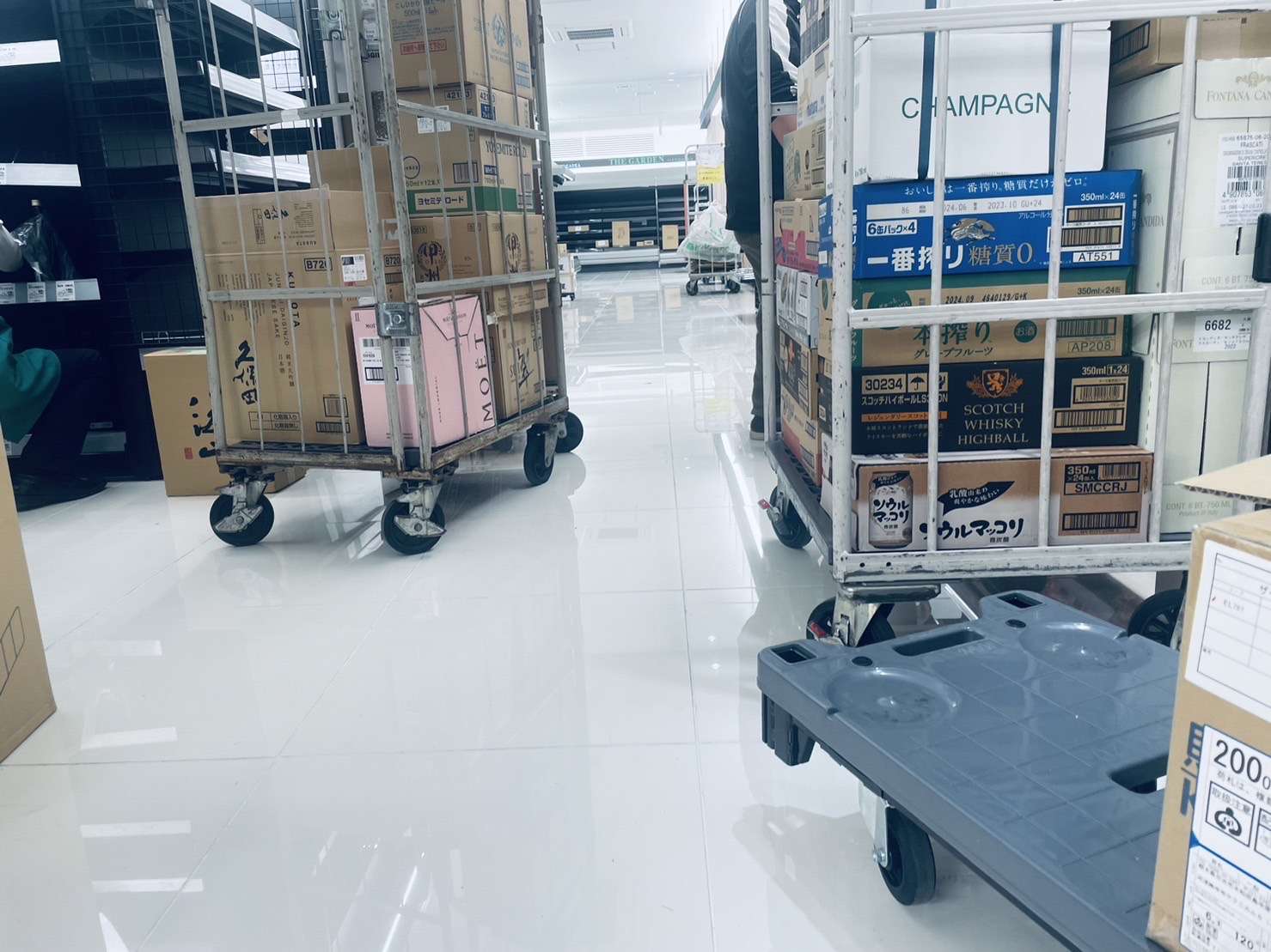 先日、某施工会社の元請け様に急な施工変更のため、渋谷区代官山の某スーパーの床タイル目地の塗装を施工しました。