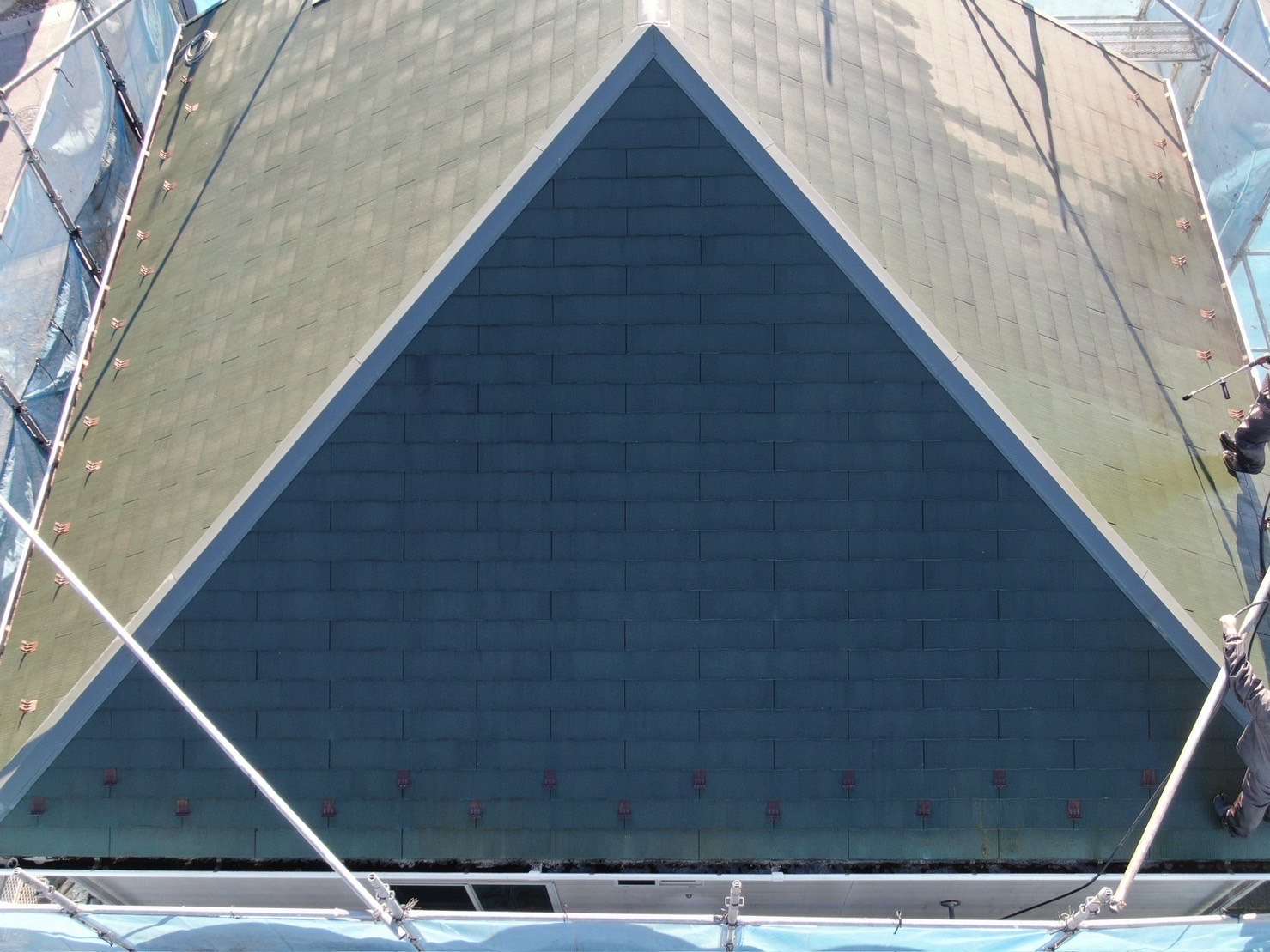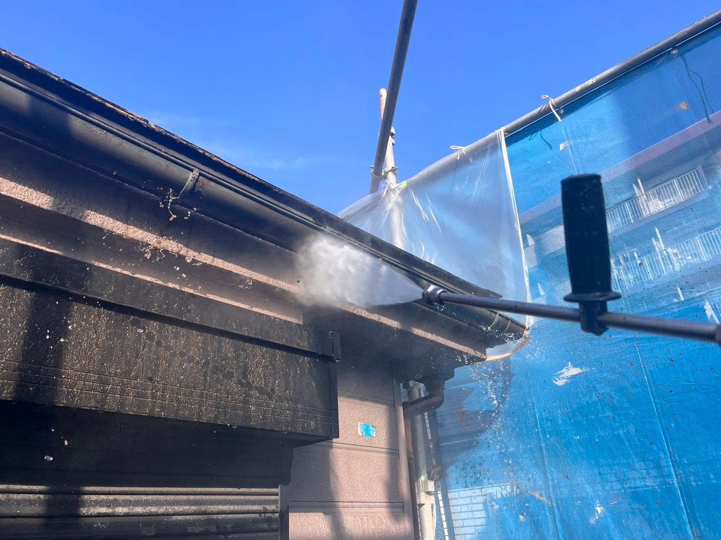 屋根・外壁塗装工事前の高圧洗浄作業後の画像になります。