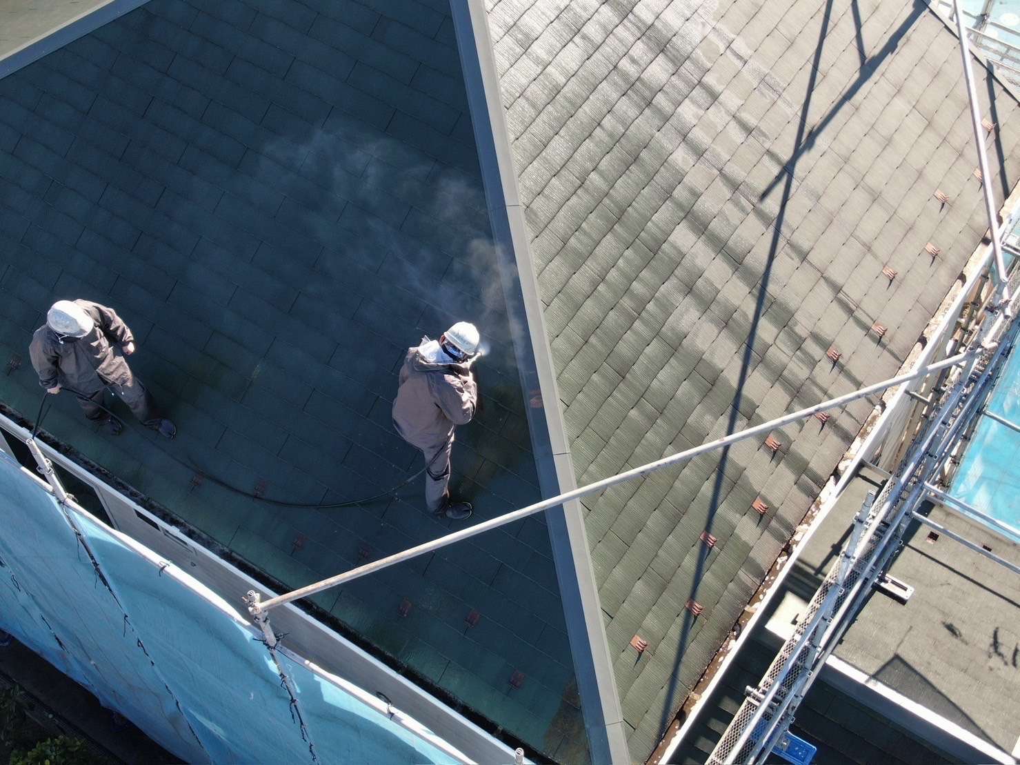 高圧洗浄作業の作業を上空からお見せします!/野田市・柏市の外壁塗装は美装柳屋へ