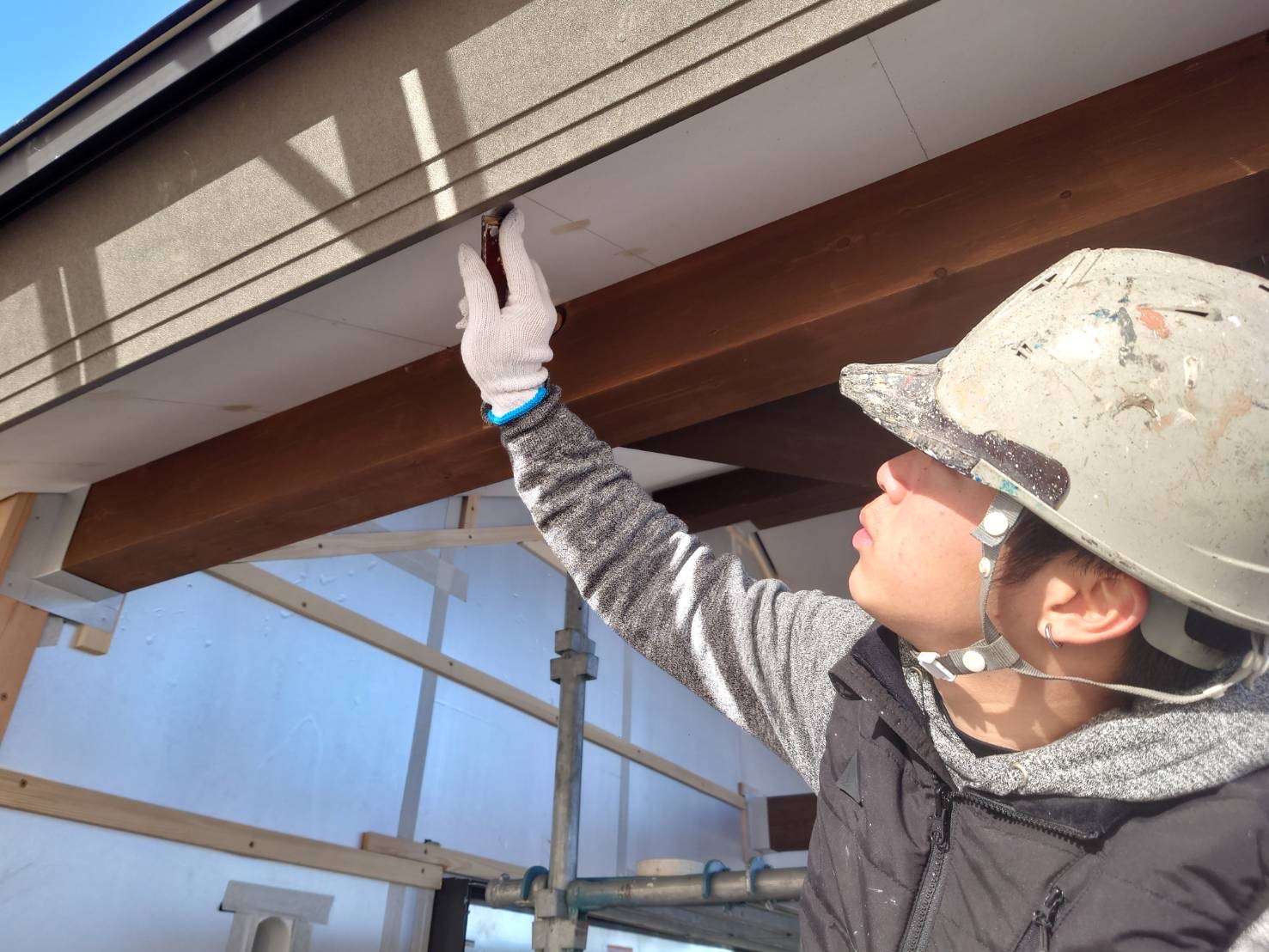 ここからは、新築住宅の軒天井塗装の施工内容をご紹介します😊