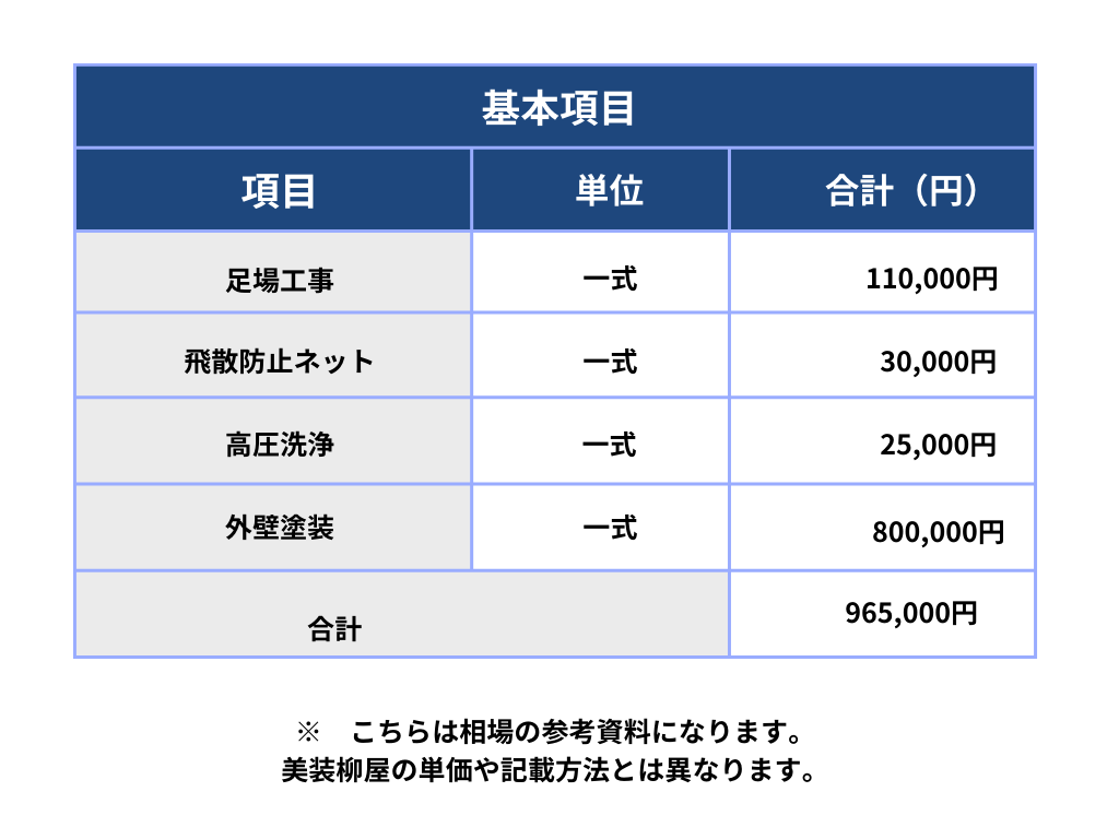 ここでは、外壁塗装の代表的な費用項目を確認しておきましょう。