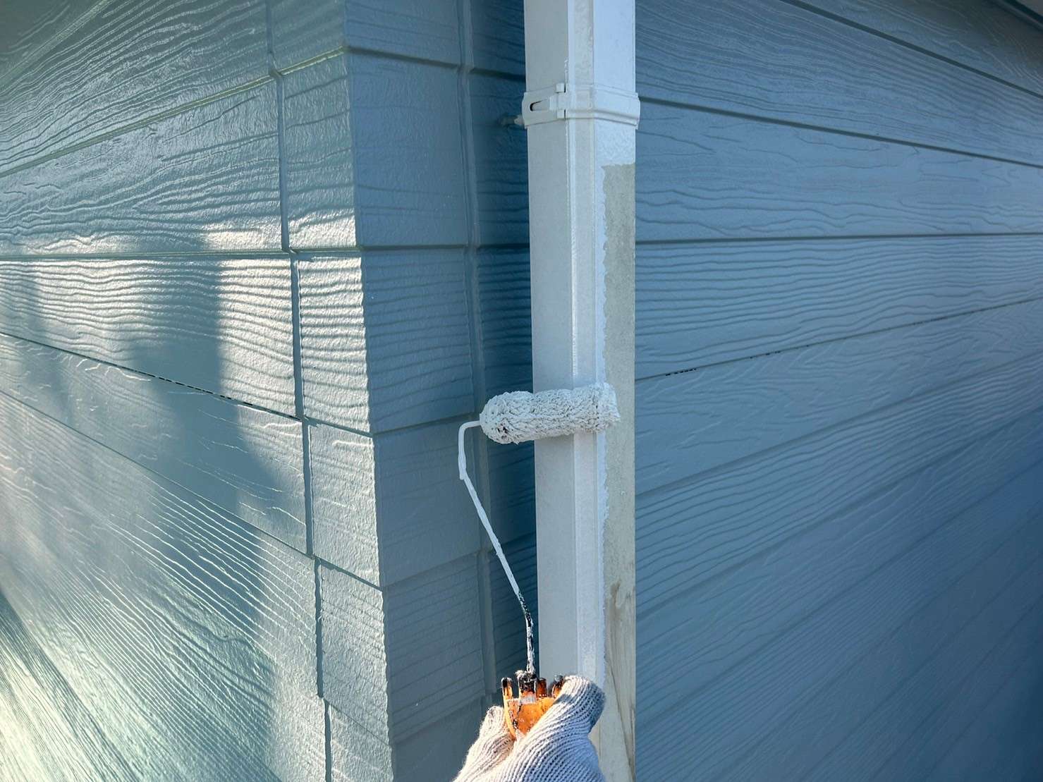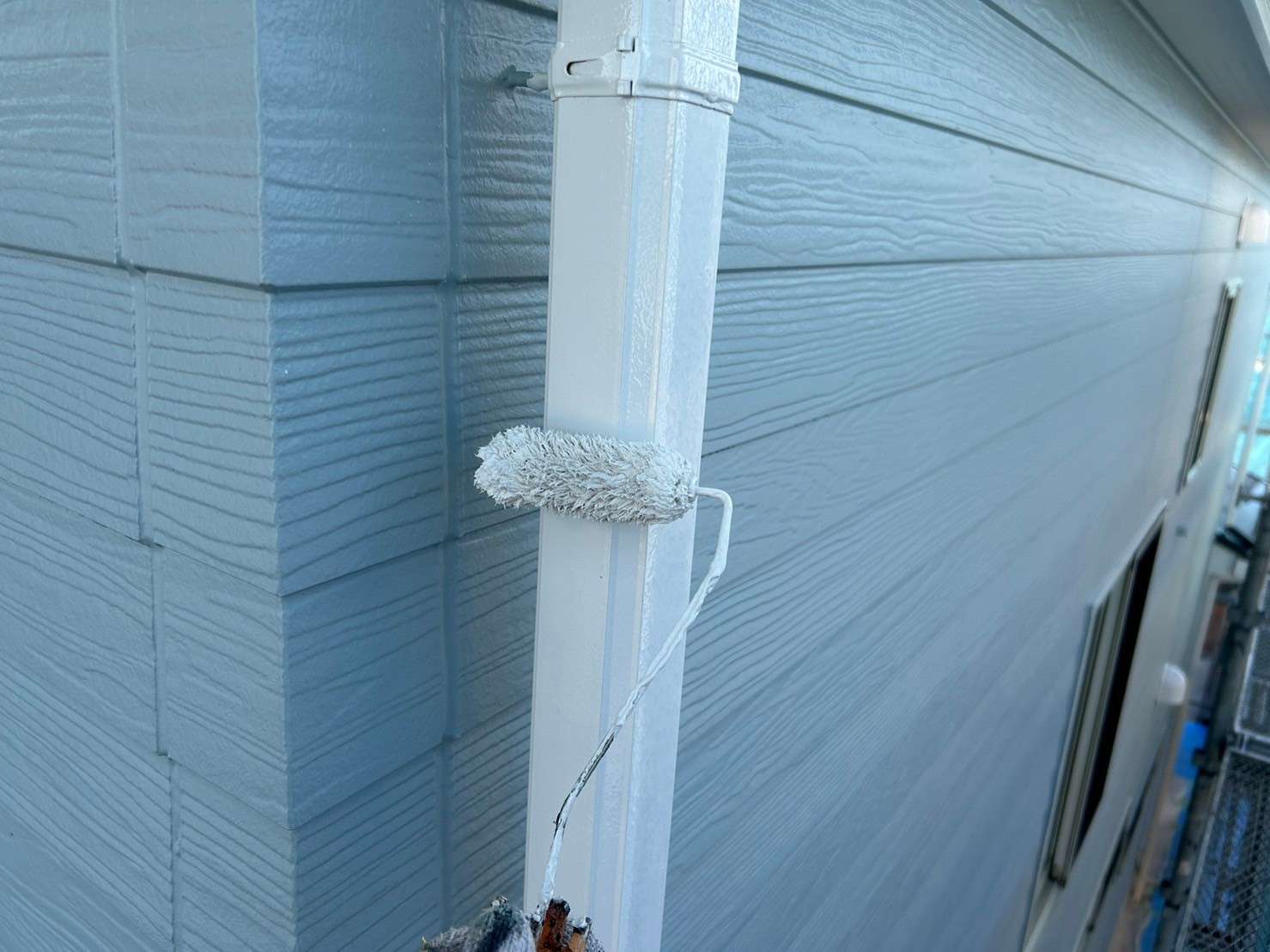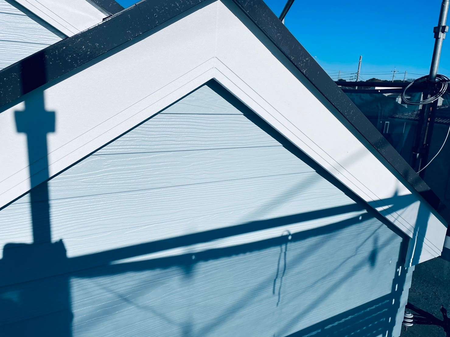 野田市H様邸では、艶消しアッシュ系ブルーの塗料を使い施工しました。