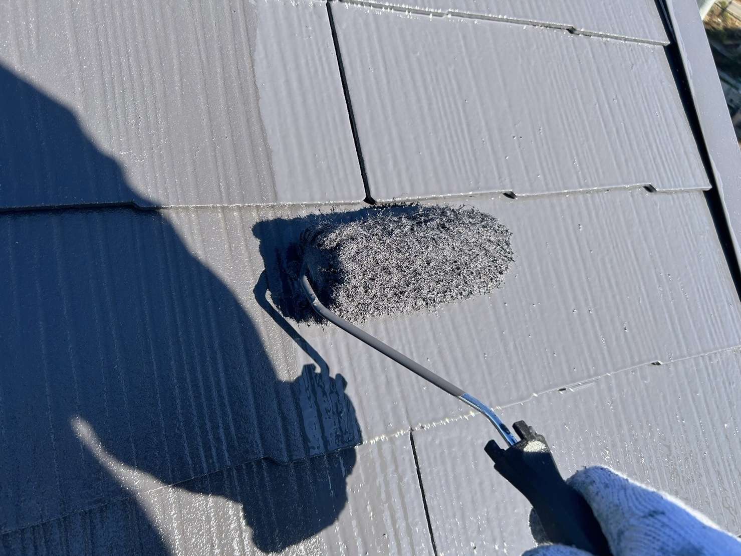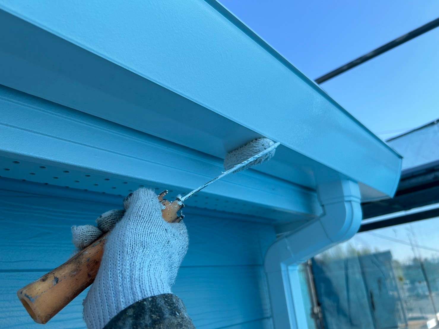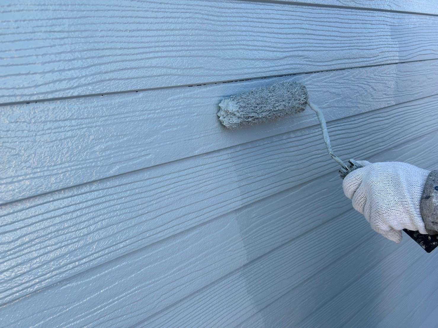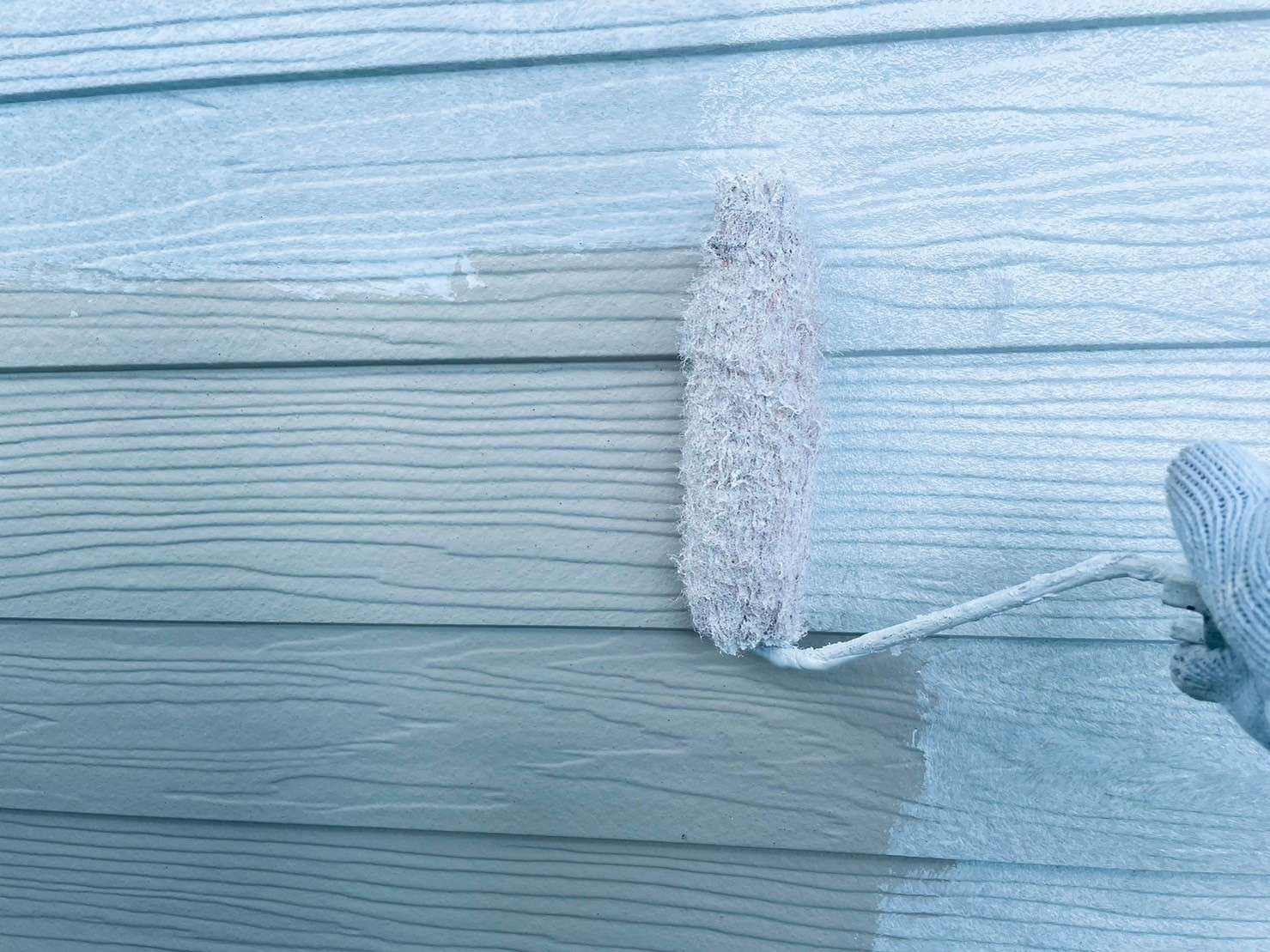 野田市H様邸では、艶消しアッシュ系ブルーの塗料を使い施工しました。