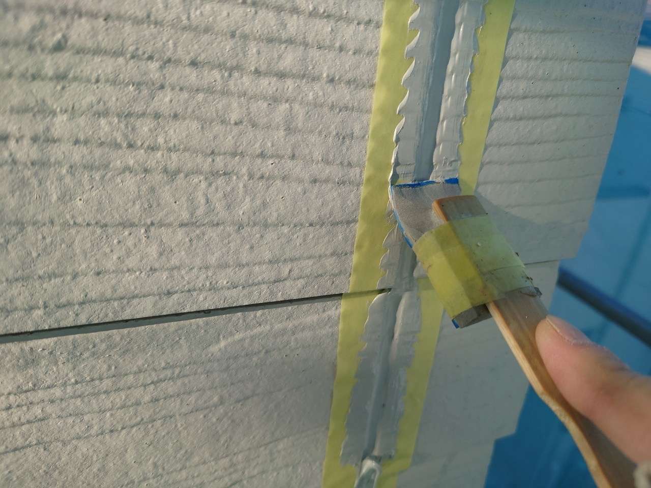 シーリング打ち替え工事は、【古いシーリング撤去→プライマー塗布→シーリング材充填→なびき作業】の順で行なっていきます。