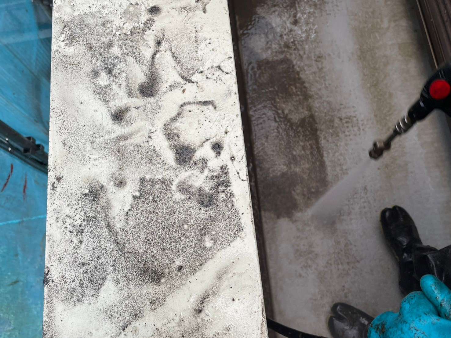 高圧洗浄は、旧塗膜の汚れをとり、新しく塗り替える塗料をしっかり付着させるために必要な作業です。
