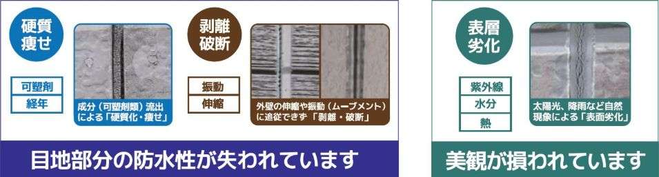 シーリングが劣化すると、様々な症状が現れるようになります。