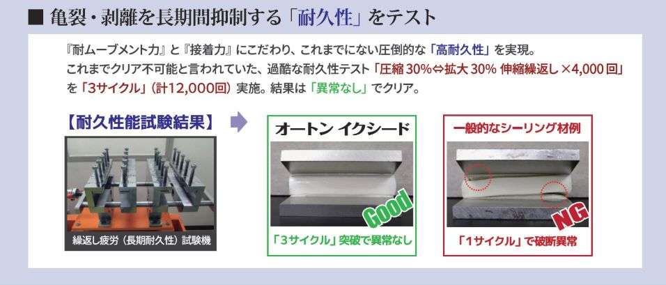 一般的なシーリング材の伸び率は400%ですが、オートンイクシードは1000%超!!